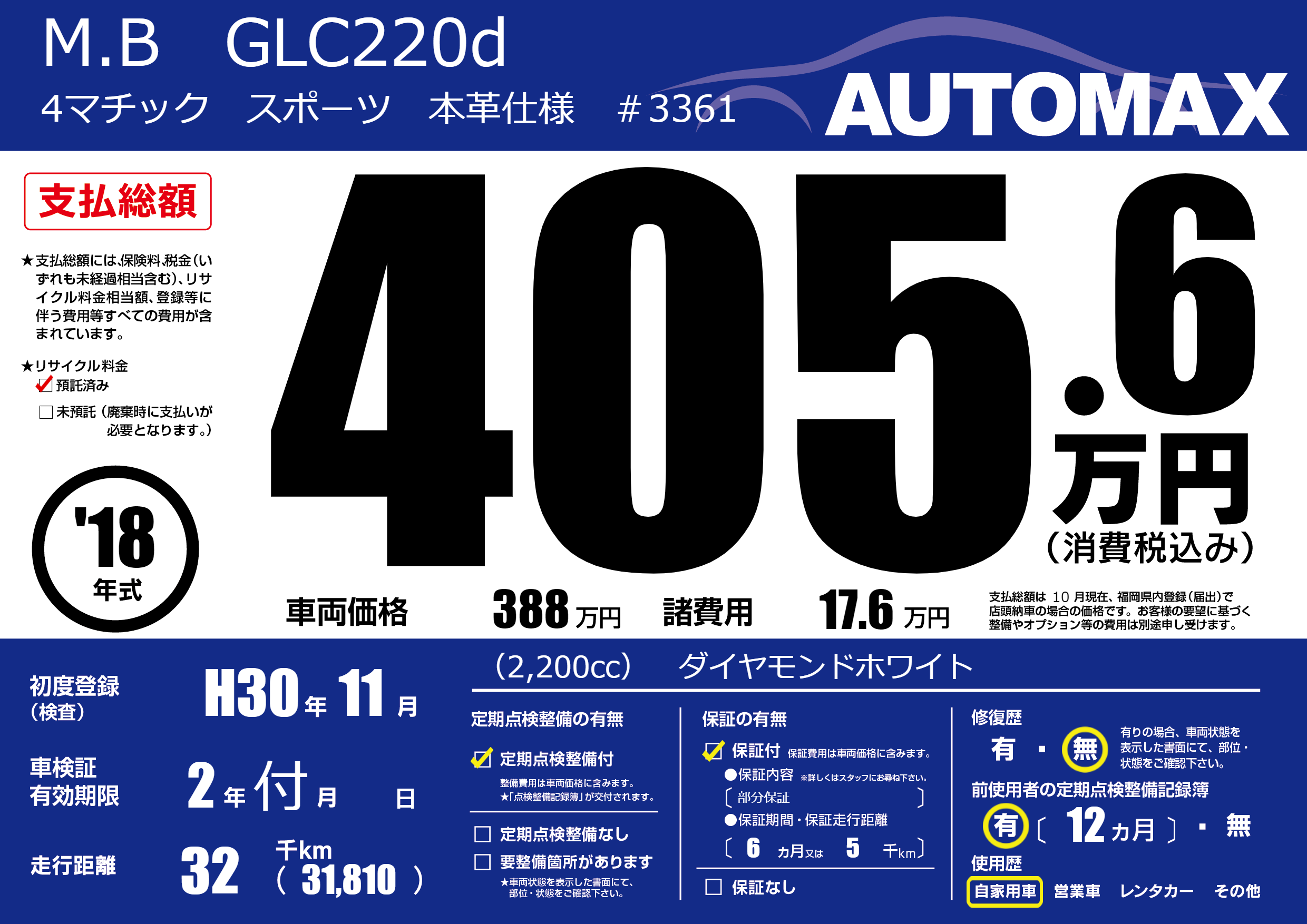 | 車名 | M.B GLC220d | グレード ミッション 排気量 |