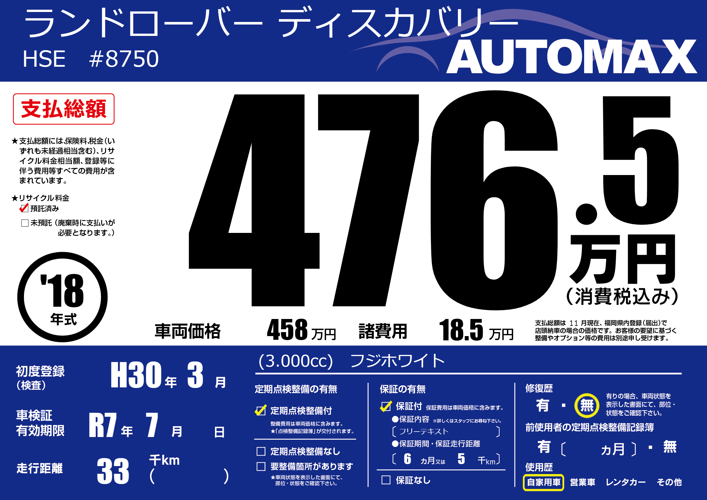 | 車名 | ランドローバー ディスカバリー | グレード ミッション 排気量 |