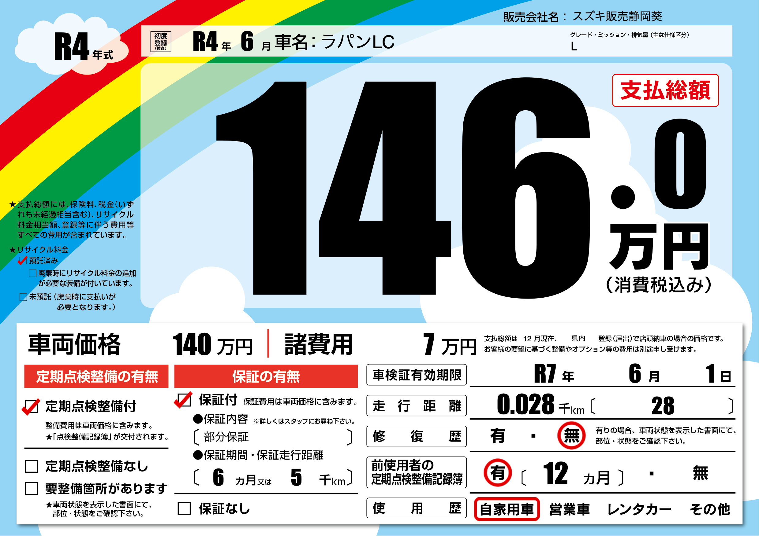 | 車名 | ラパンLC | グレード ミッション 排気量 |
