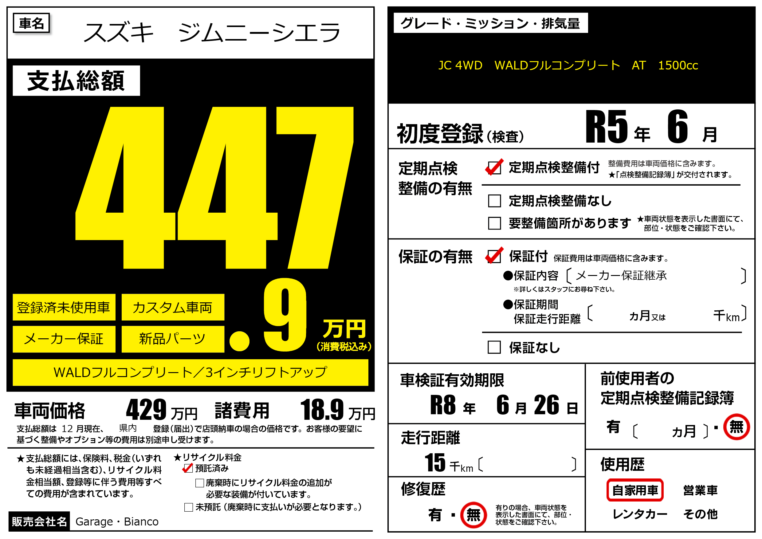 なし | 車検制限 | R8年6月26月 |