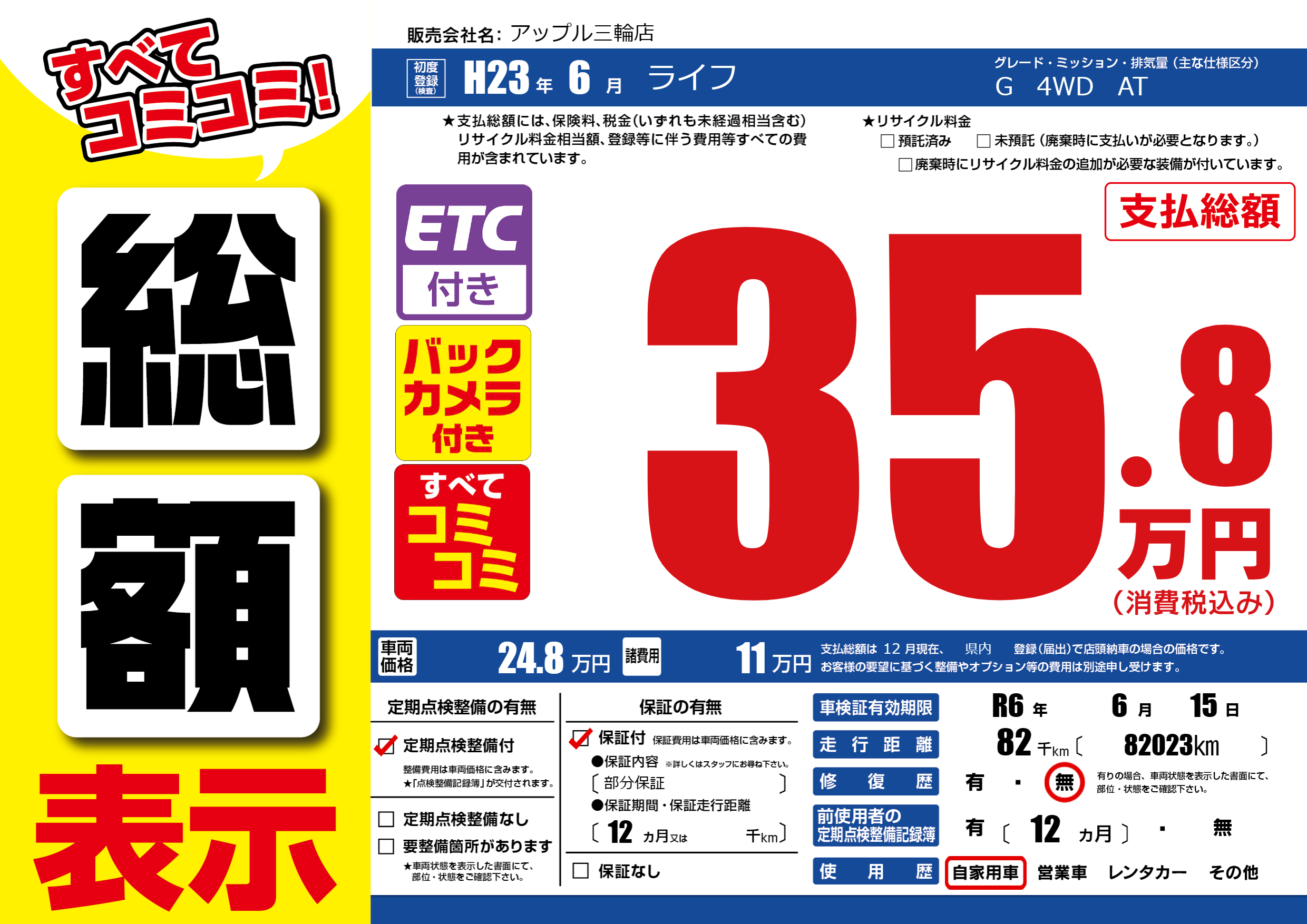 なし | 車検制限 | R6年6月15月 |