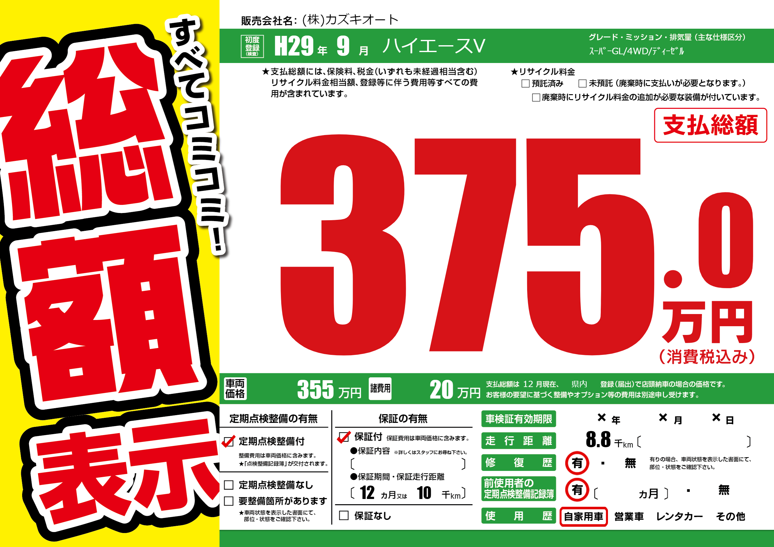 | 車名 | ハイエースV | グレード ミッション 排気量 |