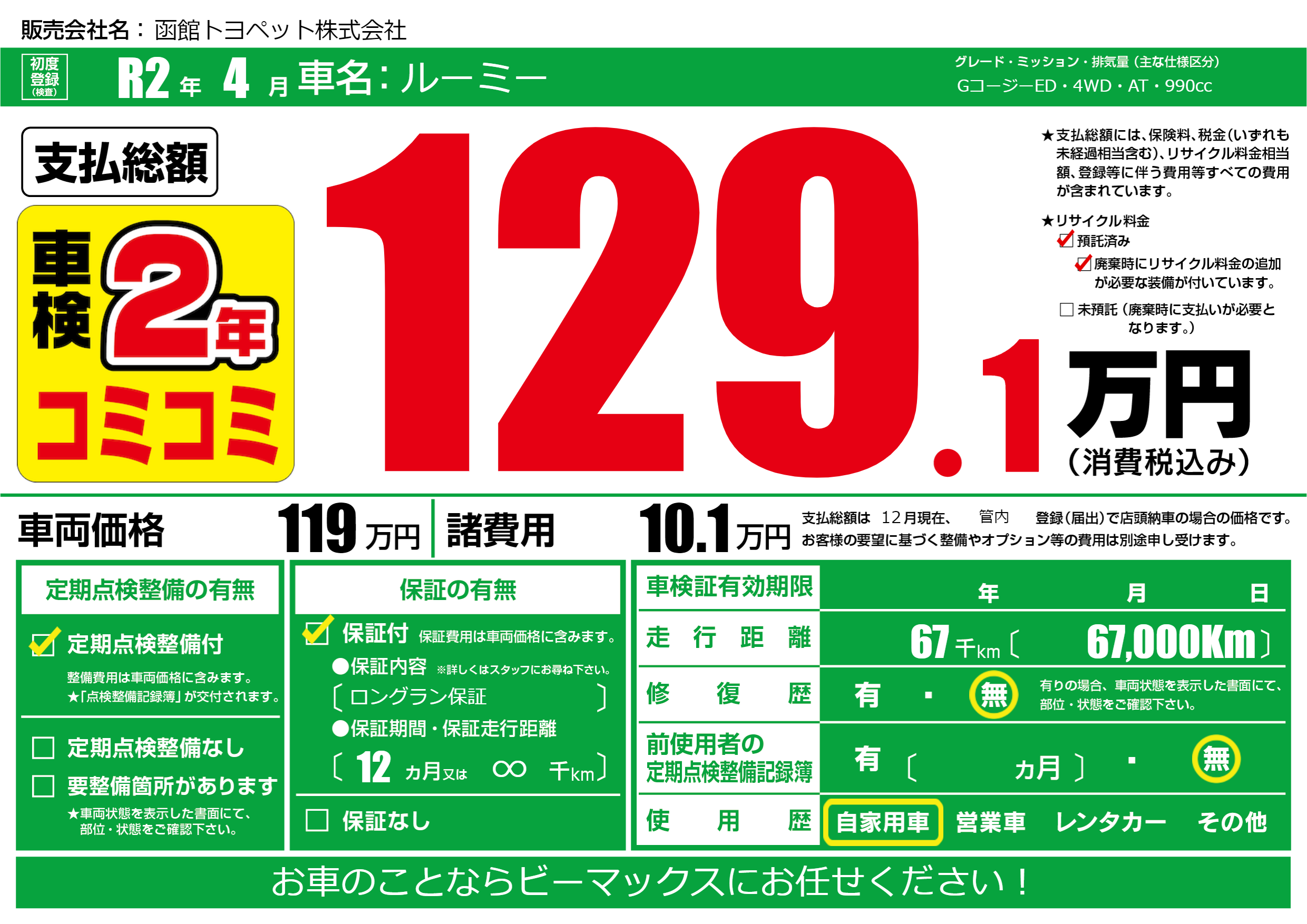 | 定期点検整備 | 定期点検整備あり | ||