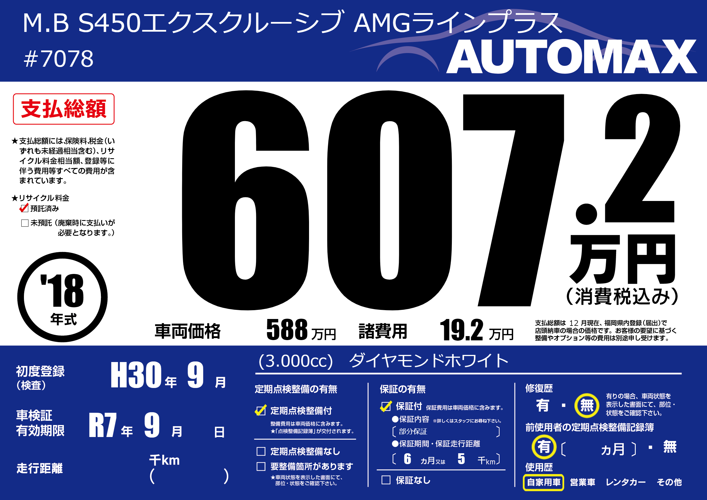 | 車検制限 | R7年 9月 - 日 | ||
