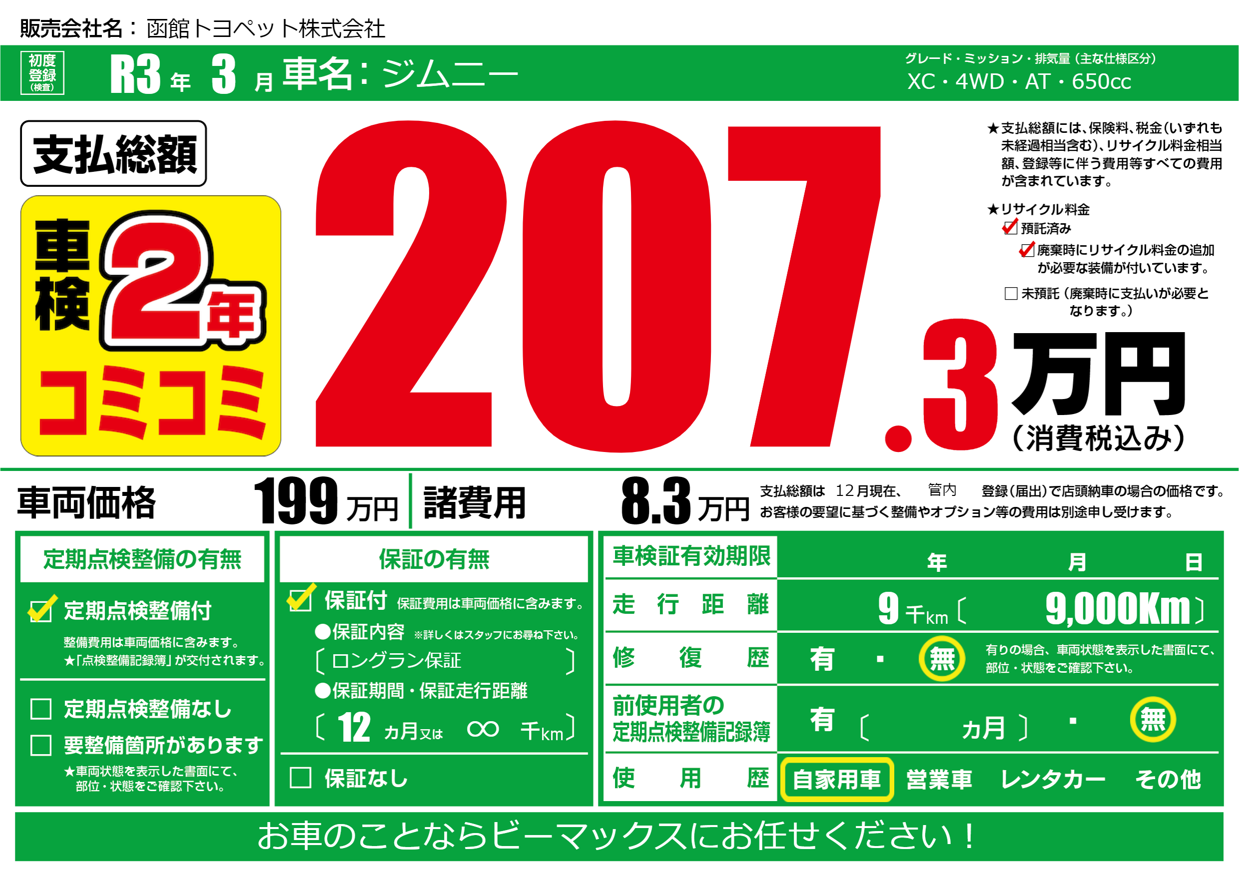 | 定期点検整備 | 定期点検整備あり | ||