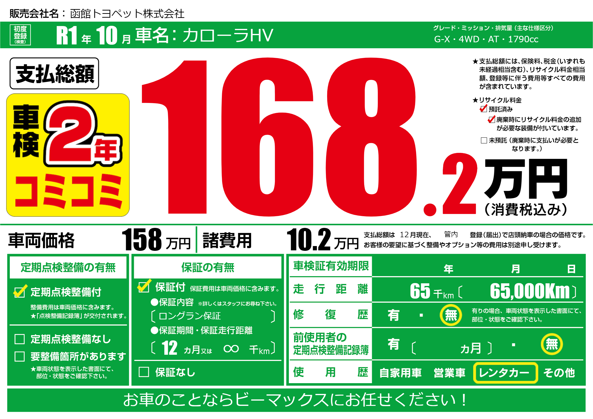 | 定期点検整備 | 定期点検整備あり | ||