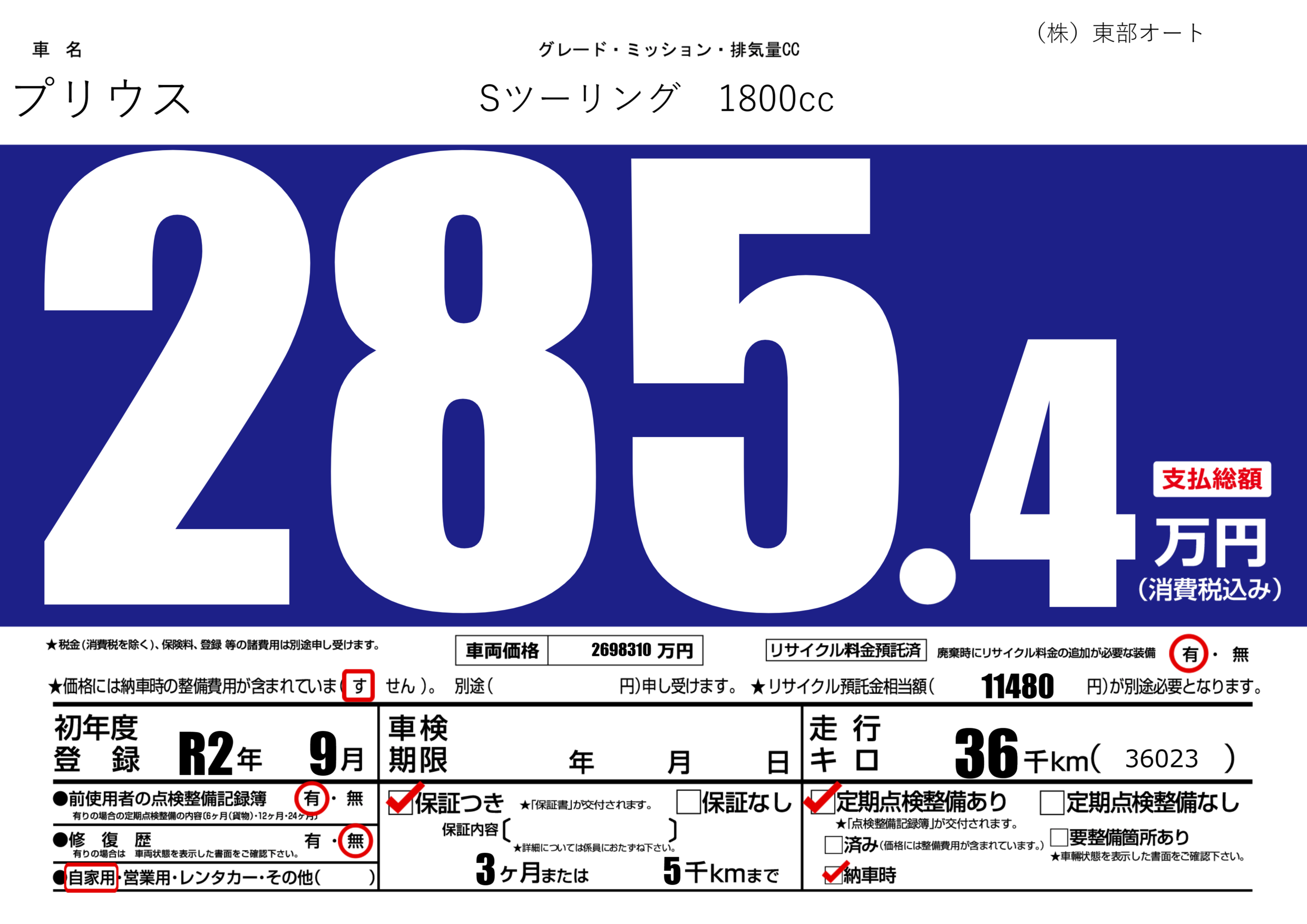 | 車名 | プリウス | グレード ミッション 排気量 |