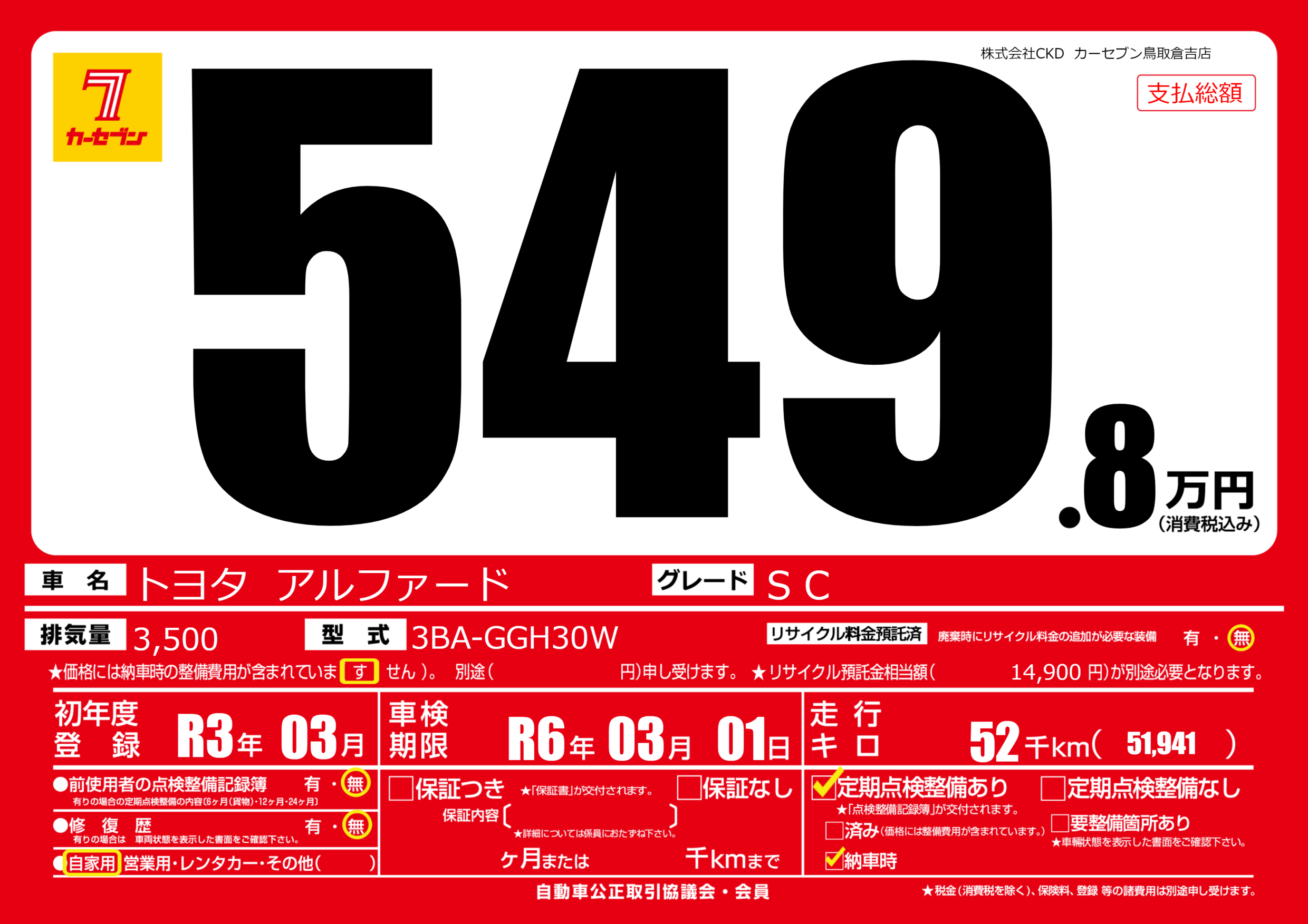 | 車検制限 | R6年 03月 01日 | ||