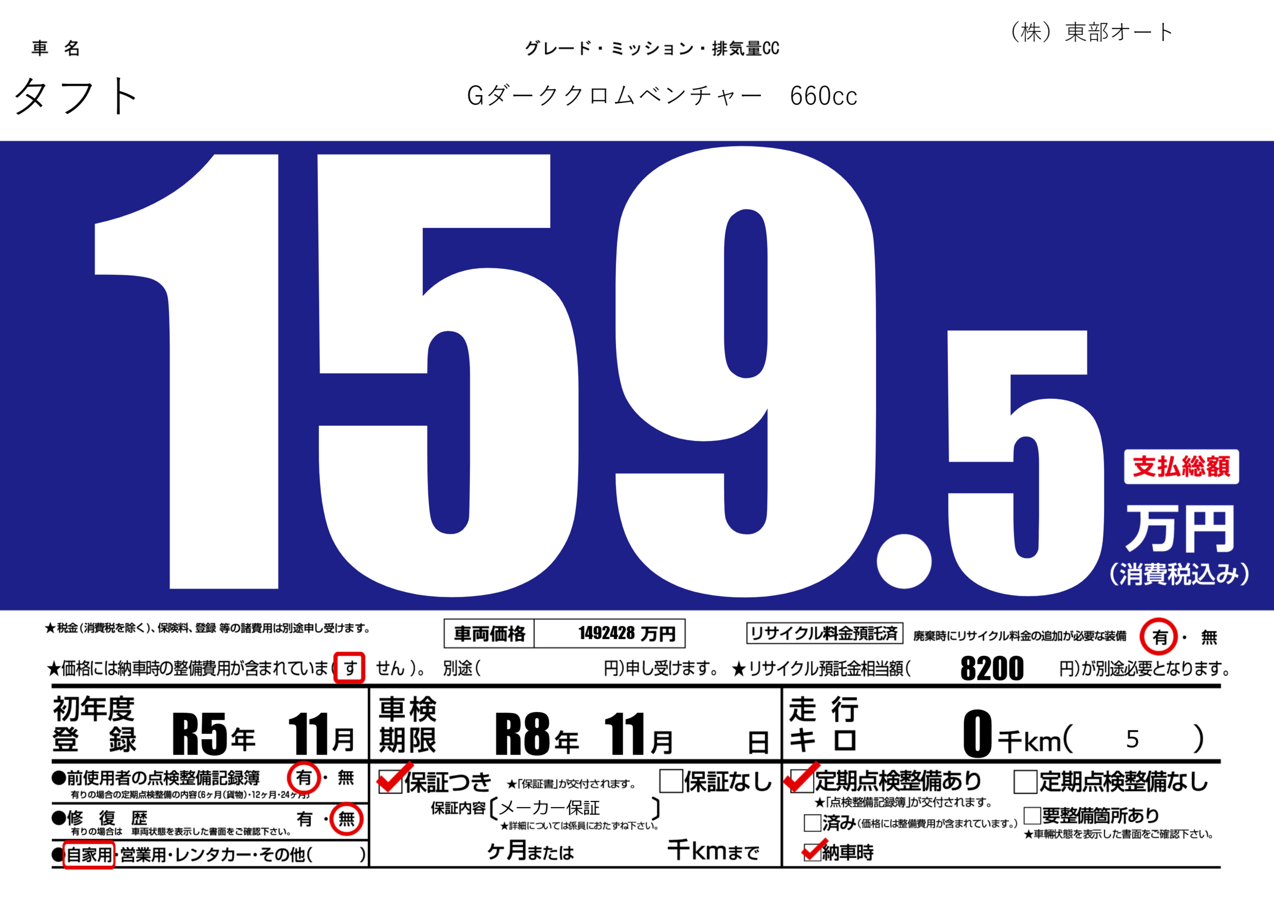 | 定期点検整備 | 定期点検整備あり 納車時あり | ||