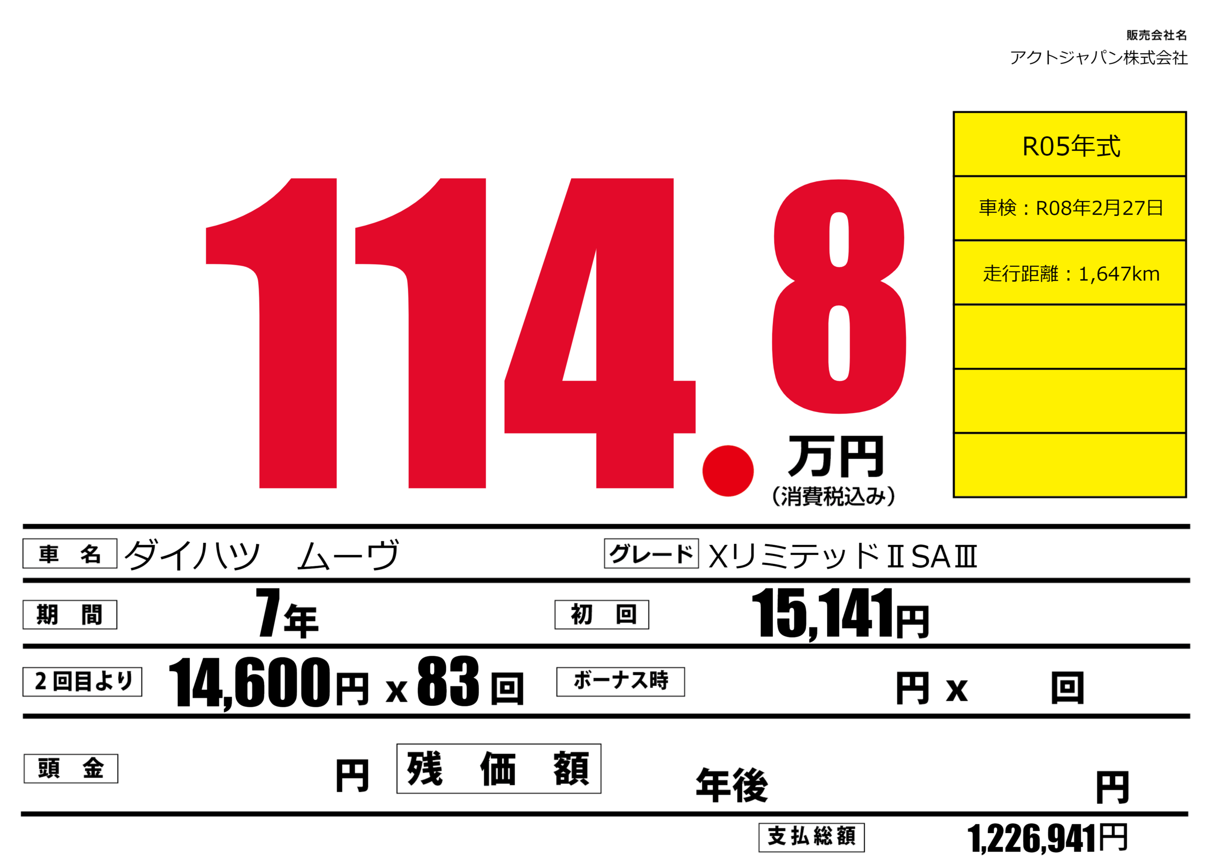 | 車名 | ダイハツ ムーヴ | グレード ミッション 排気量 |