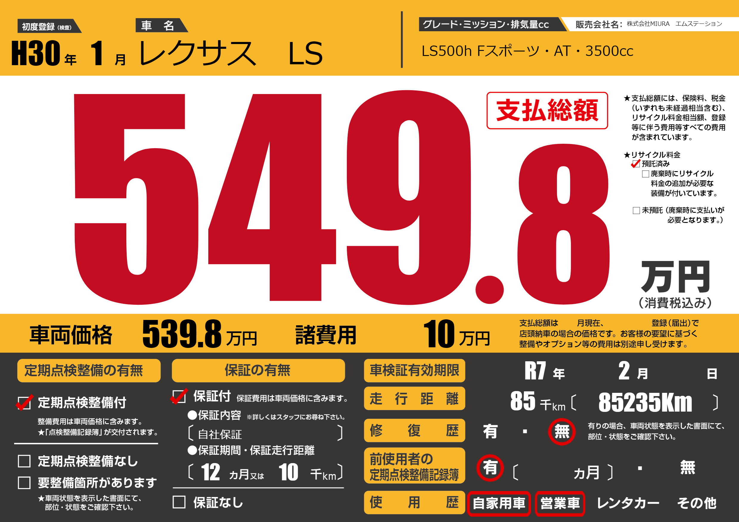 | 車名 | レクサス LS | グレード ミッション 排気量 |