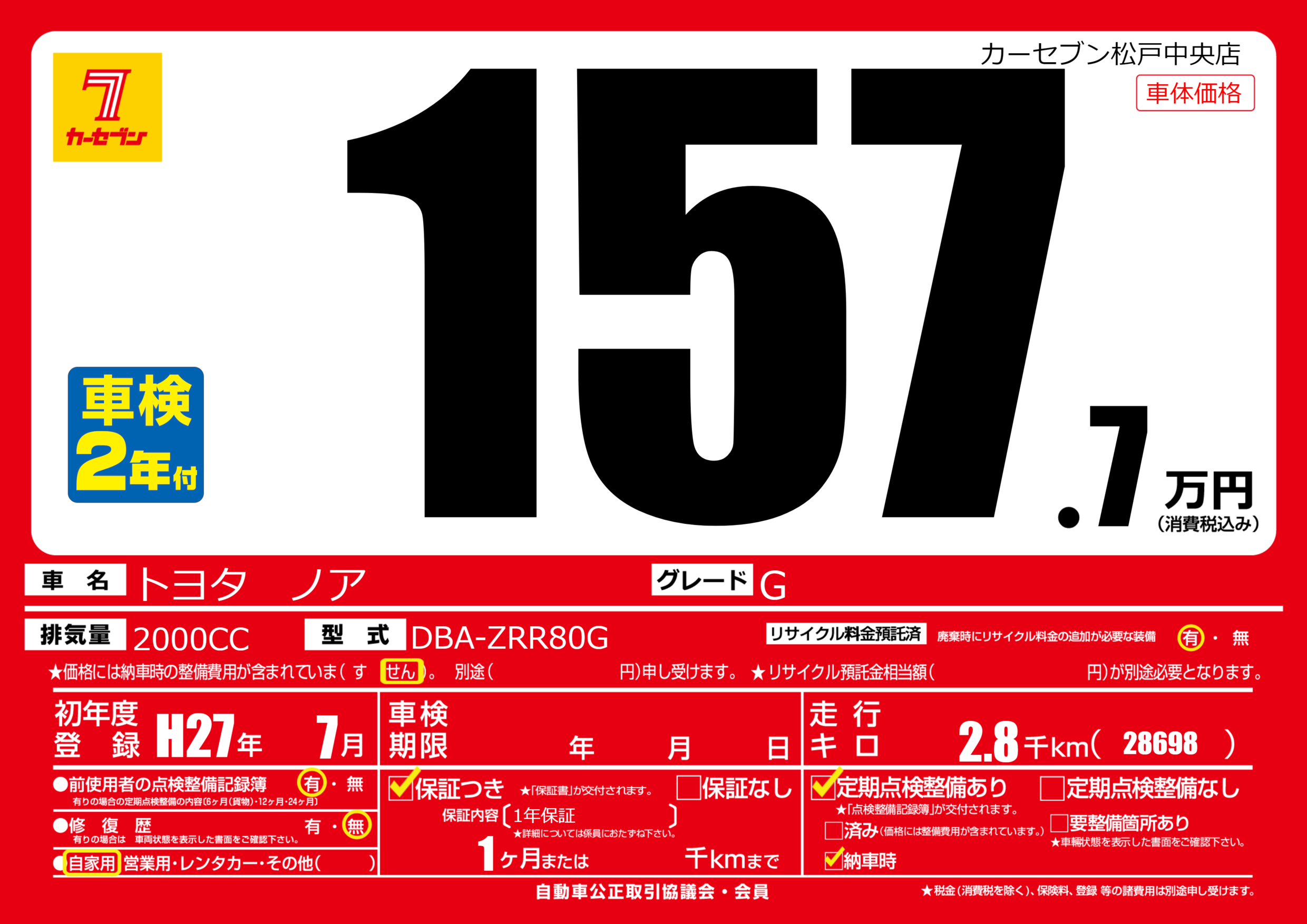 | 初年度登録 | H27年7月 | ||