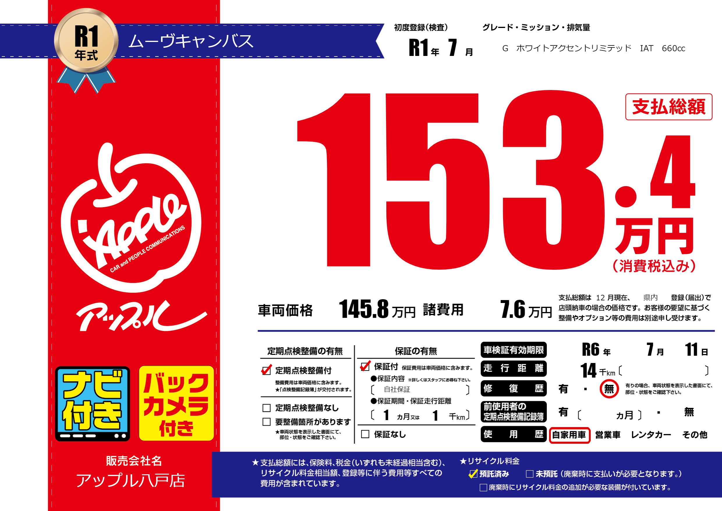 | 車検制限 | R6年 7月 11日 | ||