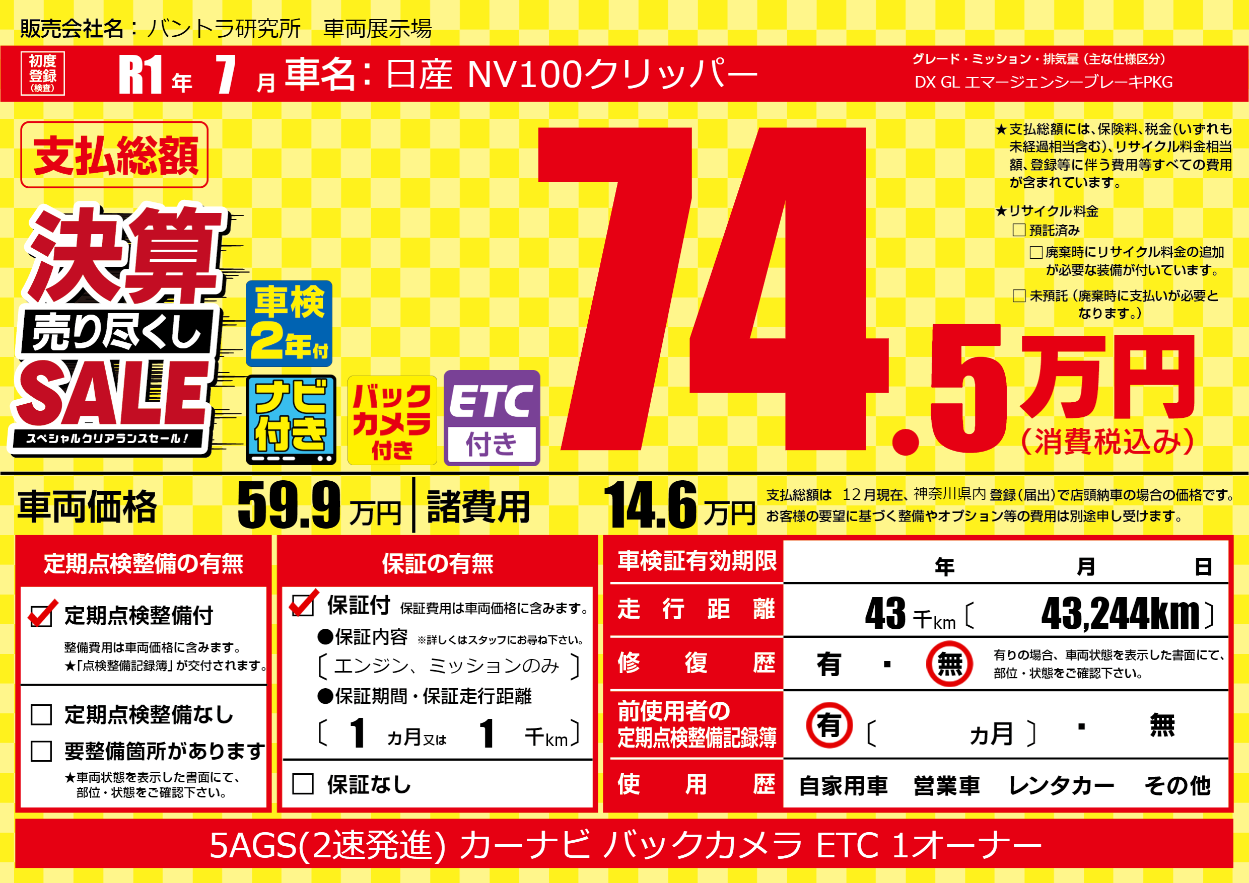 | 走行キロ | 4.3万km | ||