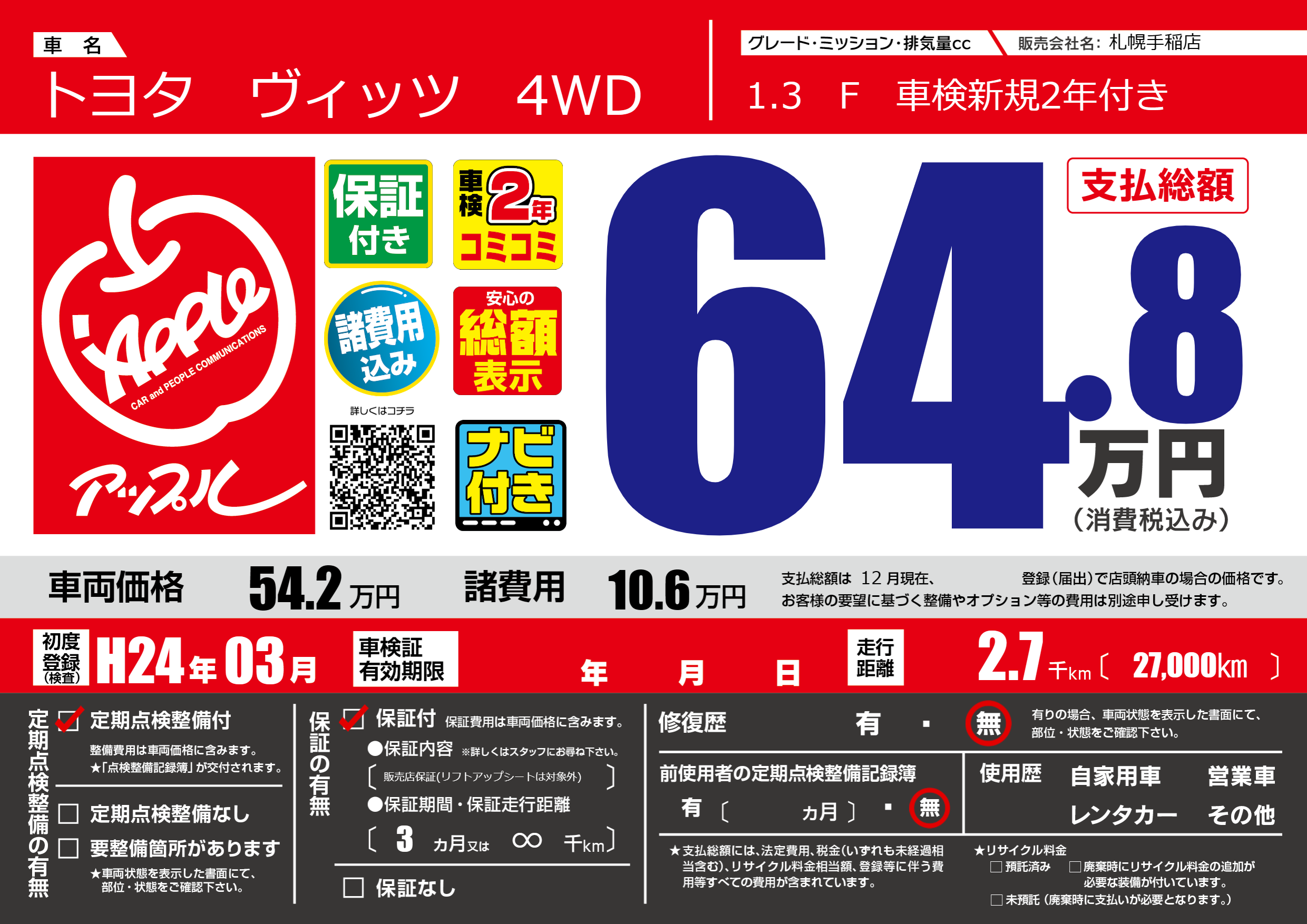 1.3 F 車検新規2年付き |