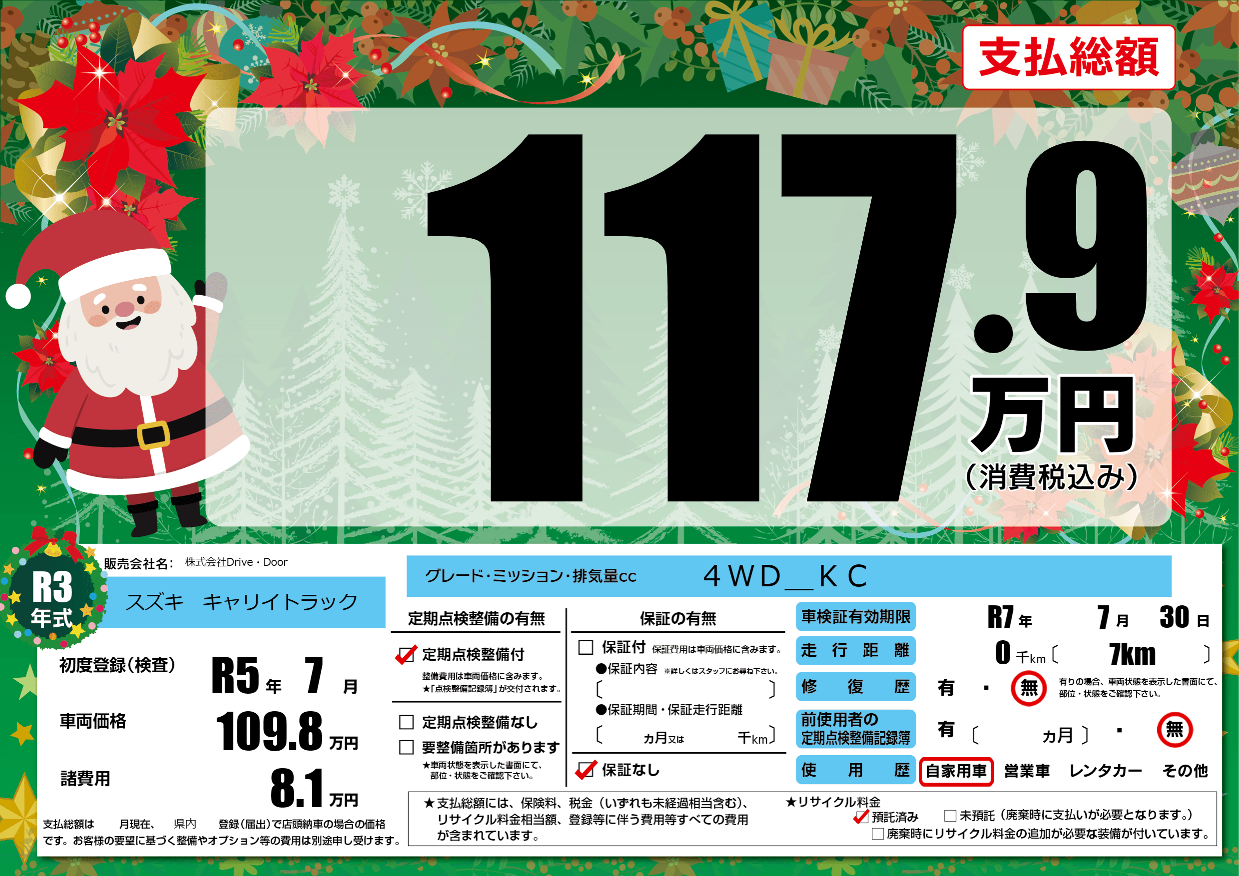 | 走行キロ | - | 初年度登録 | R5年7月 |