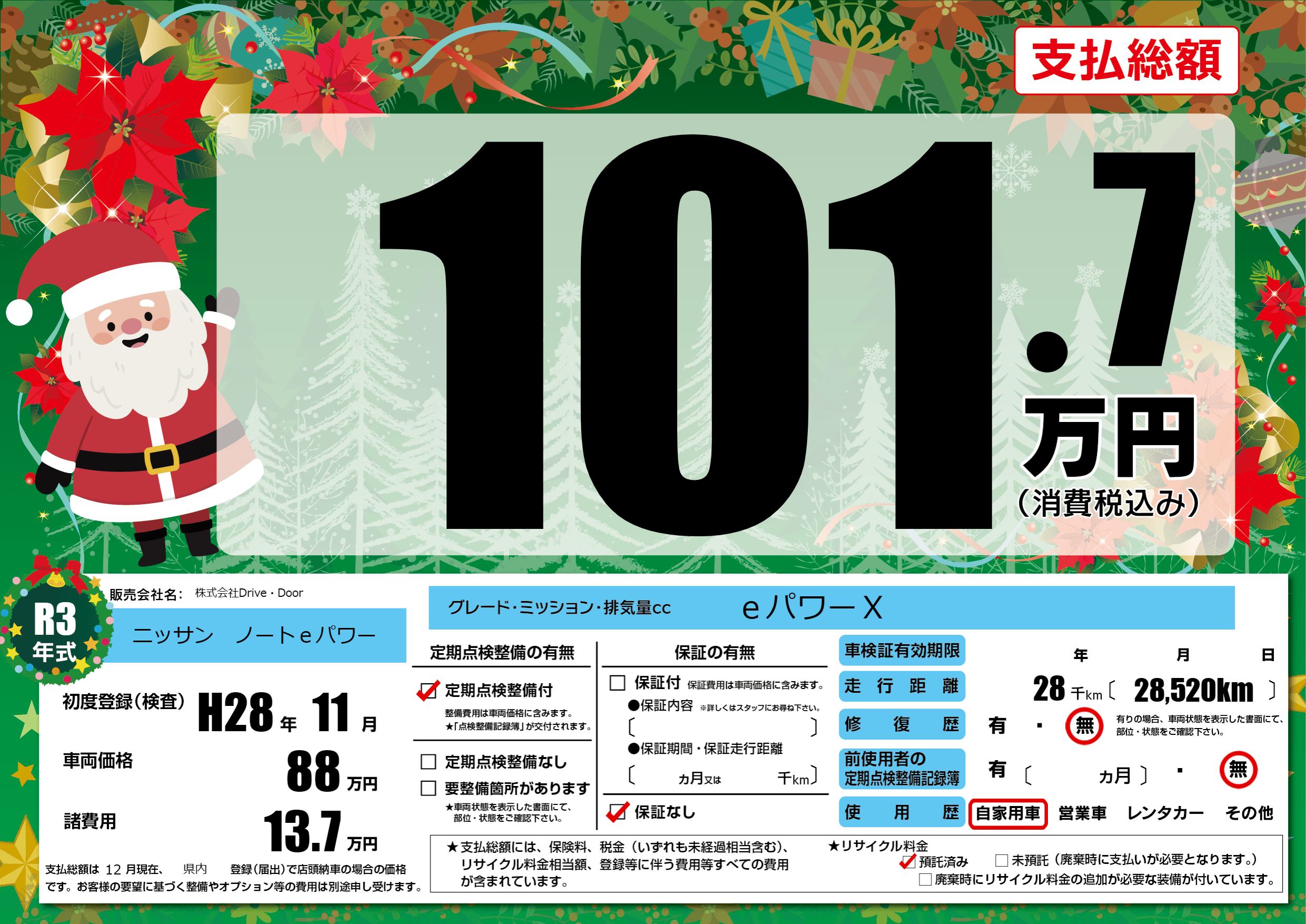 | 車名 | ニッサン ノートeパワー | グレード ミッション 排気量 |