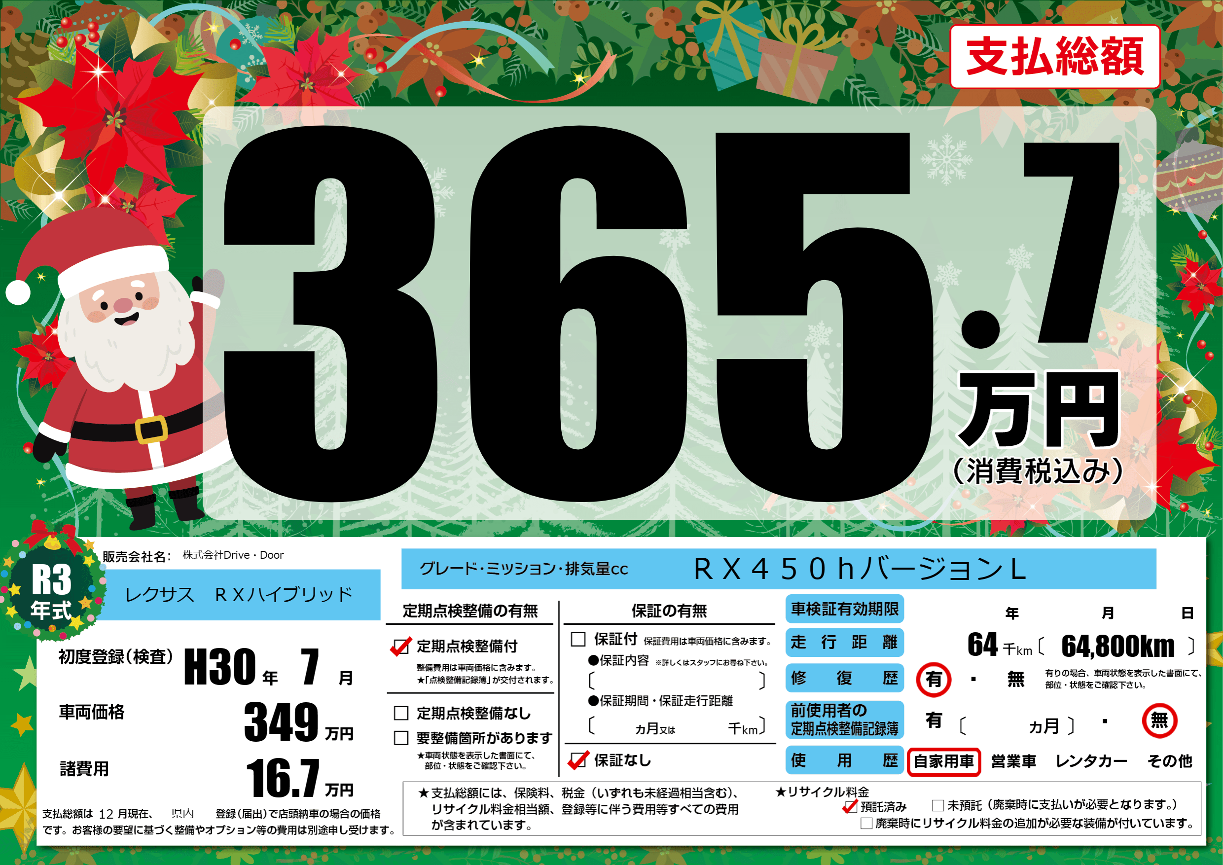 | 定期点検整備 | 定期点検整備あり | ||