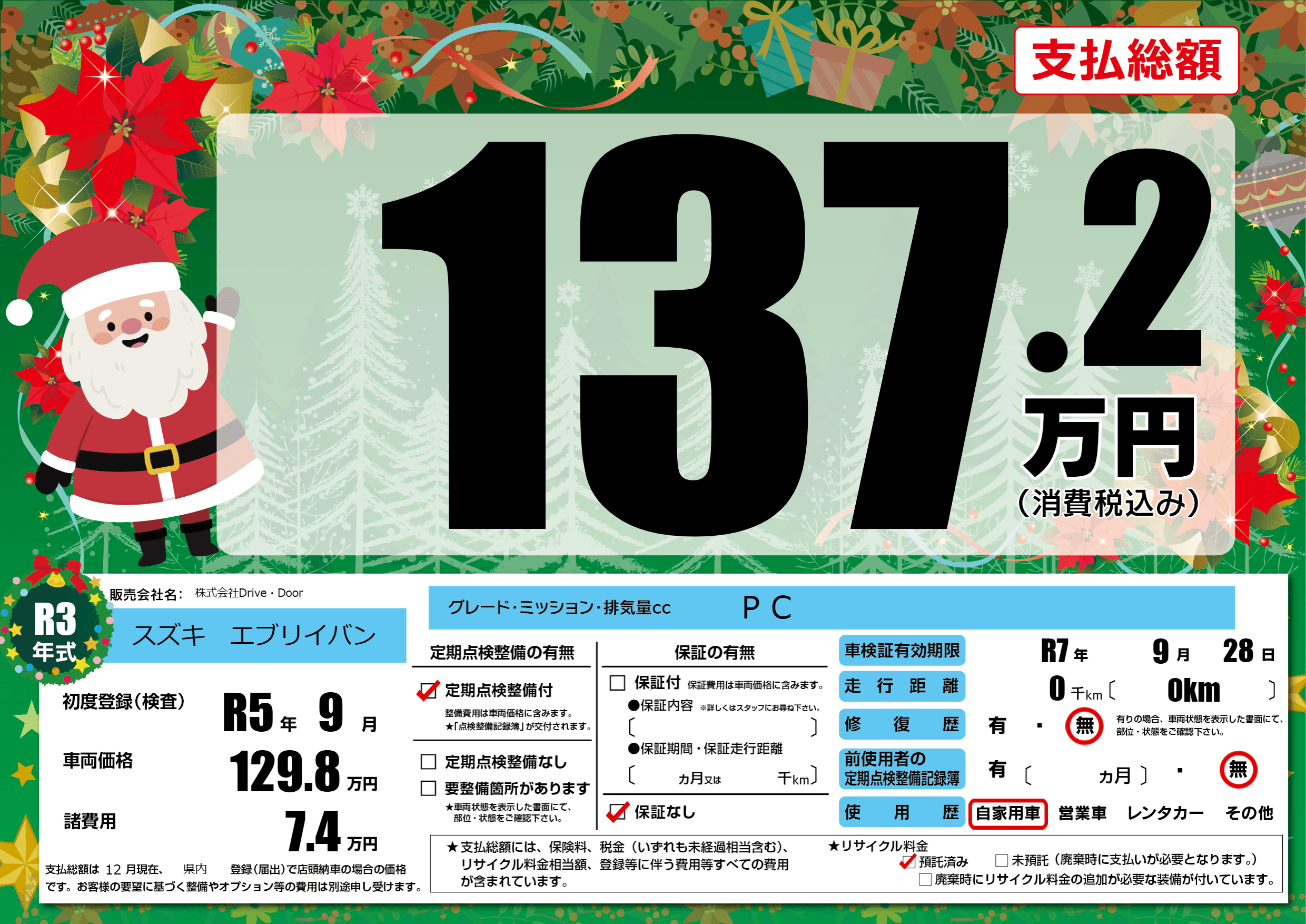 なし | 車検制限 | R7年9月28月 |