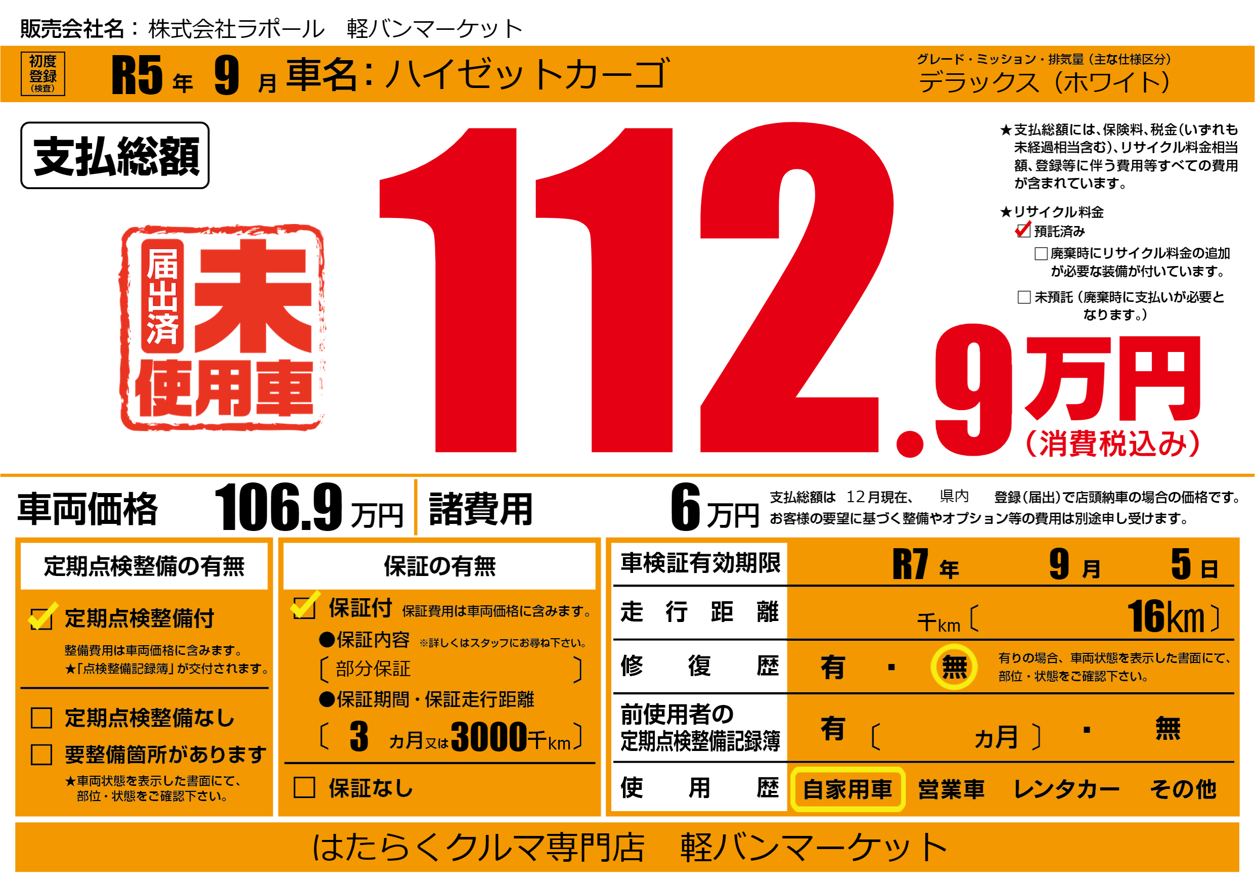 | 車検制限 | R7年 9月 5日 | ||
