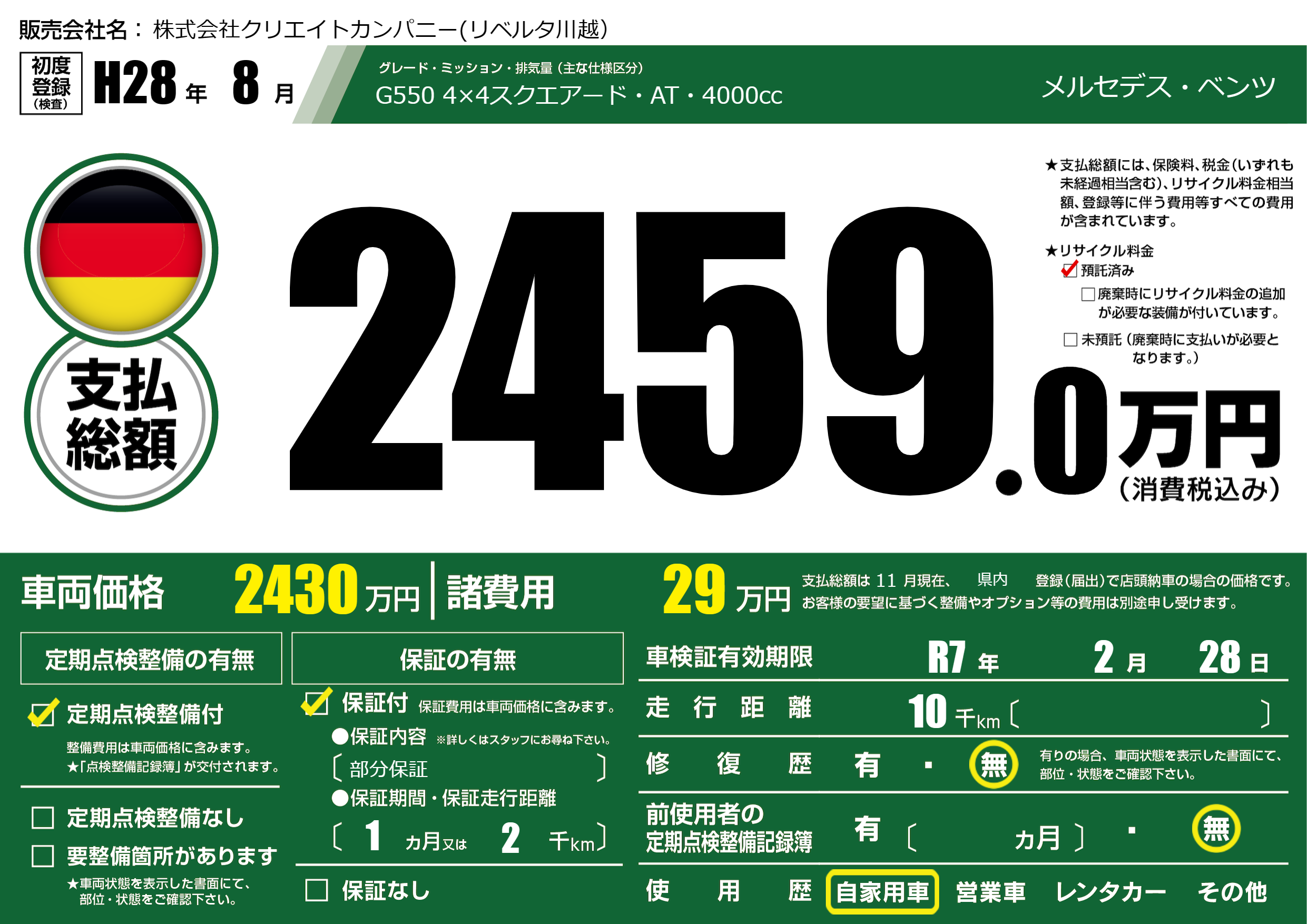 | 車検制限 | R7年 2月 28日 | ||