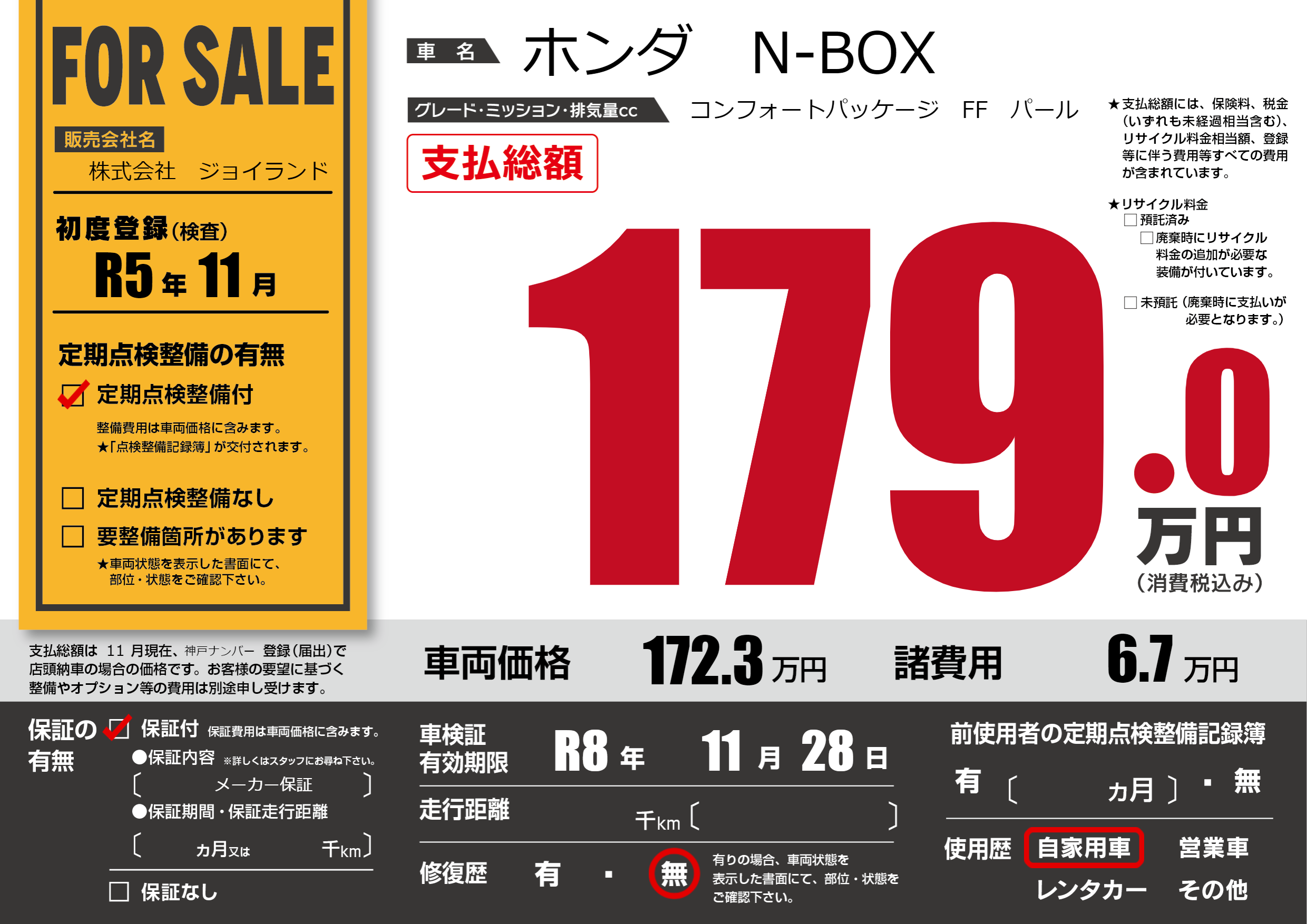 なし | 車検制限 | R8年11月28月 |