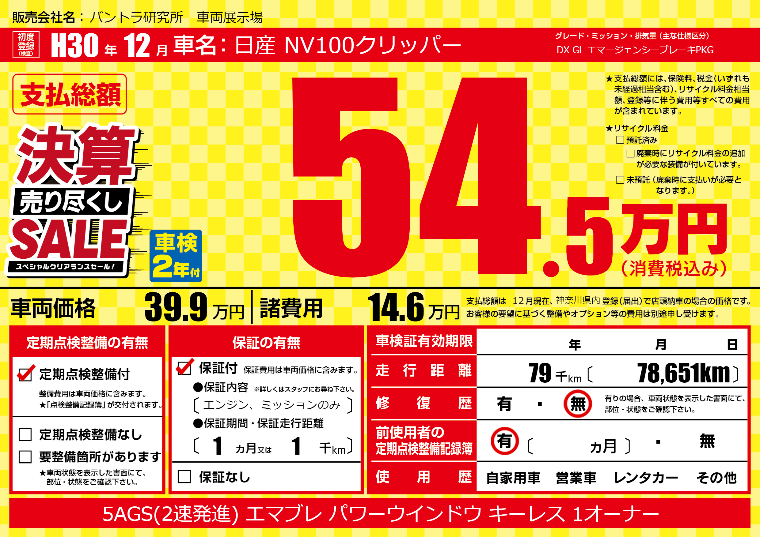 | 定期点検整備 | 定期点検整備あり | ||