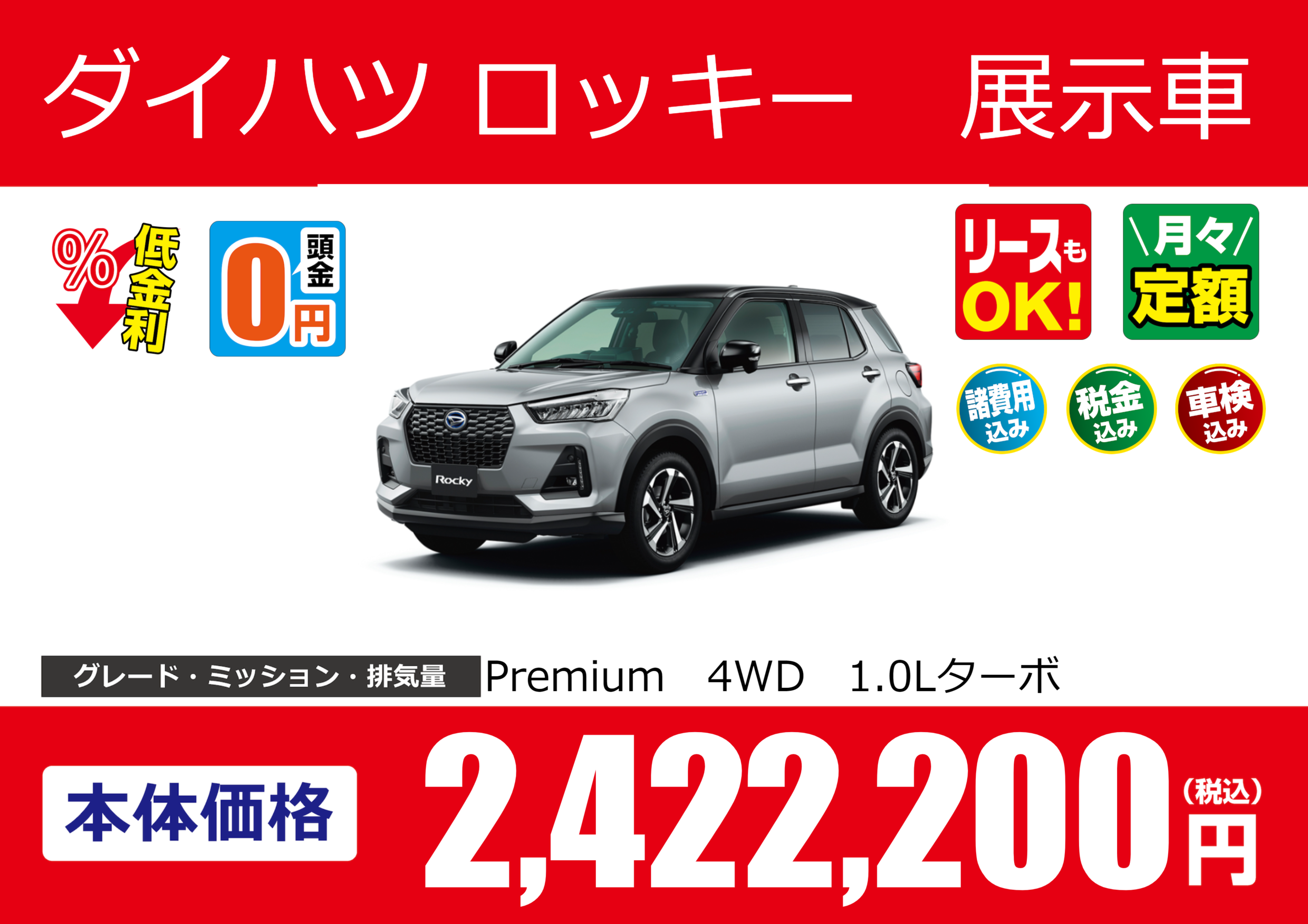 | 車名 | ダイハツ ロッキー 展示車 | グレード ミッション 排気量 |