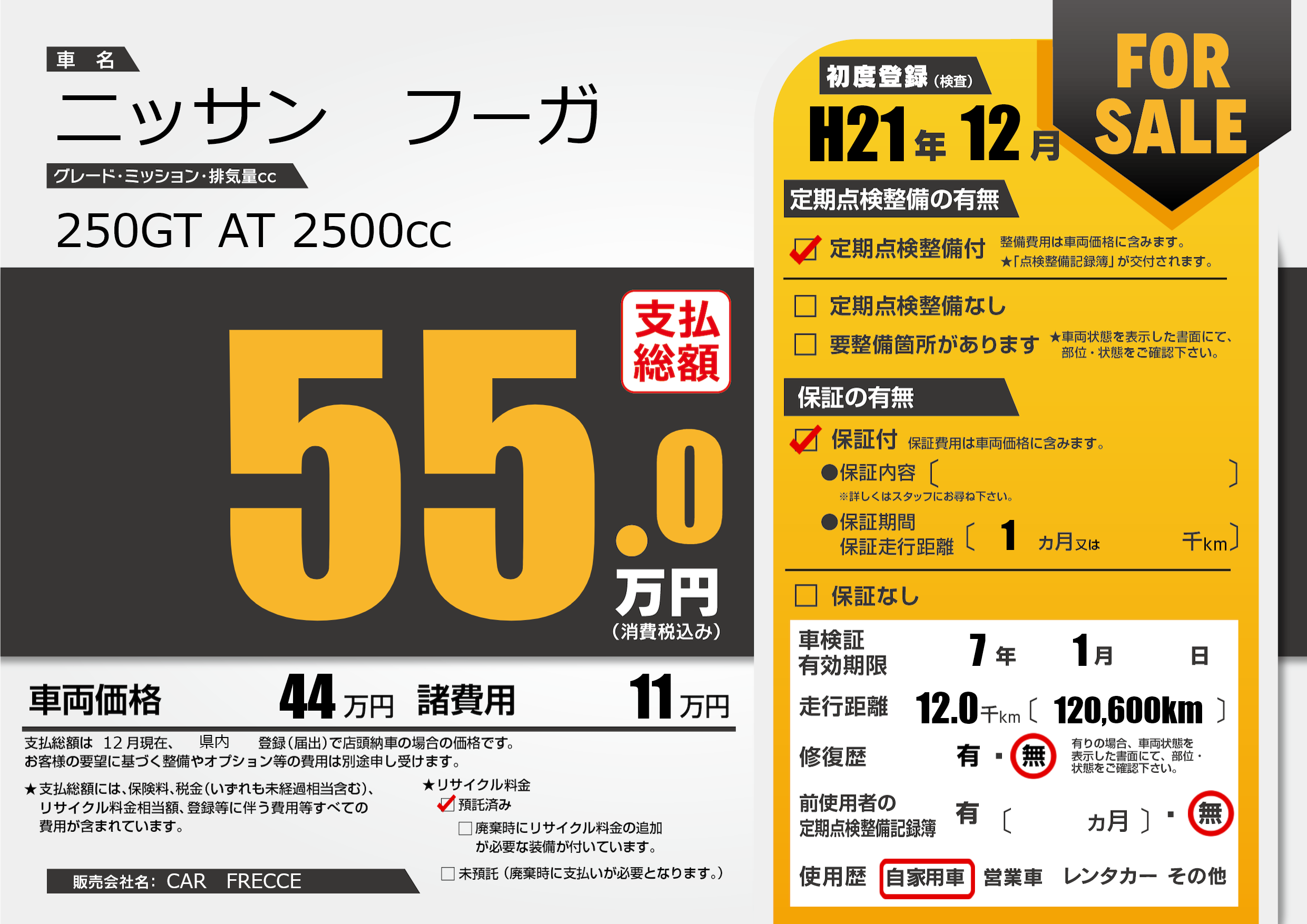 | 車名 | ニッサン フーガ | グレード ミッション 排気量 |