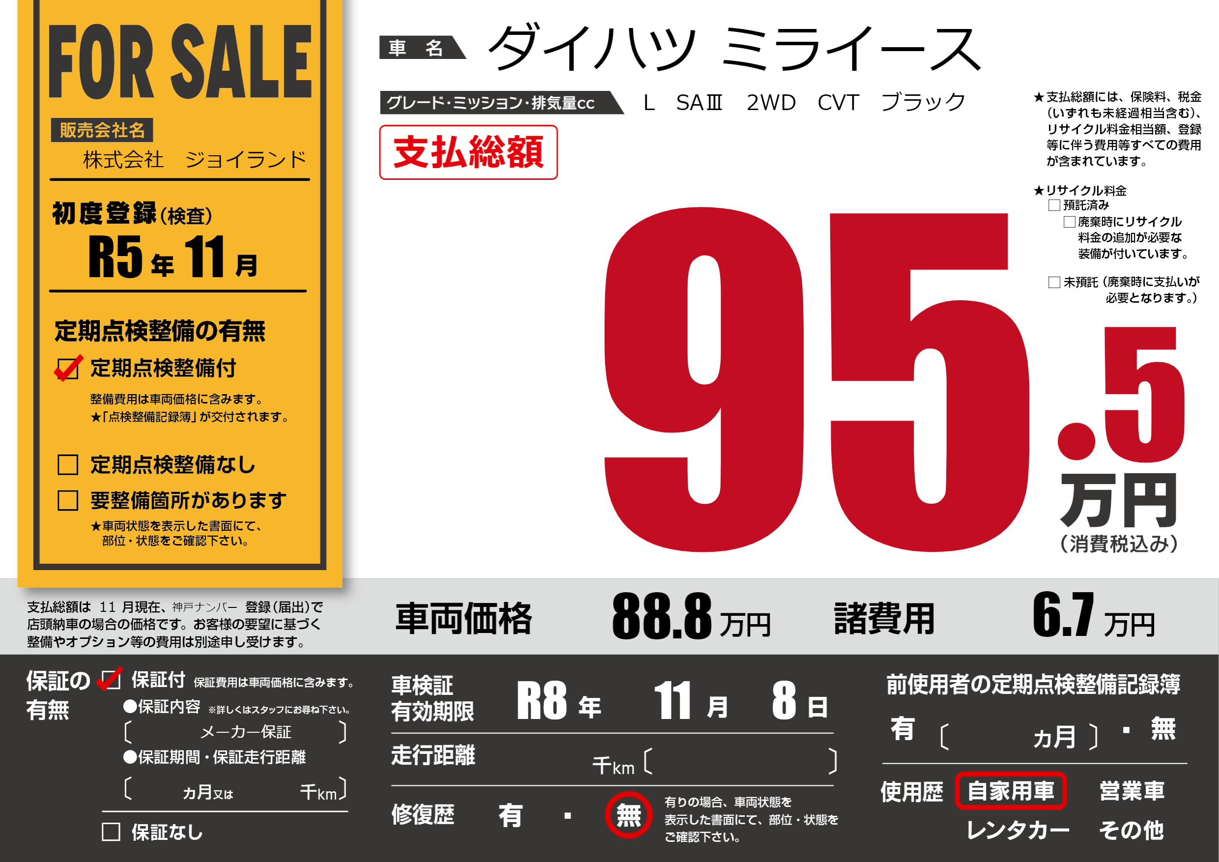 | 走行キロ | - | 初年度登録 | R5年11月 |