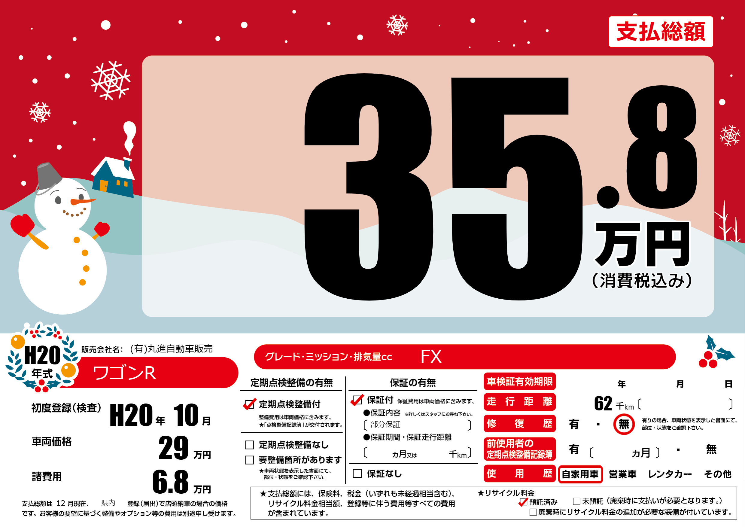 | 車名 | ワゴンR | グレード ミッション 排気量 |