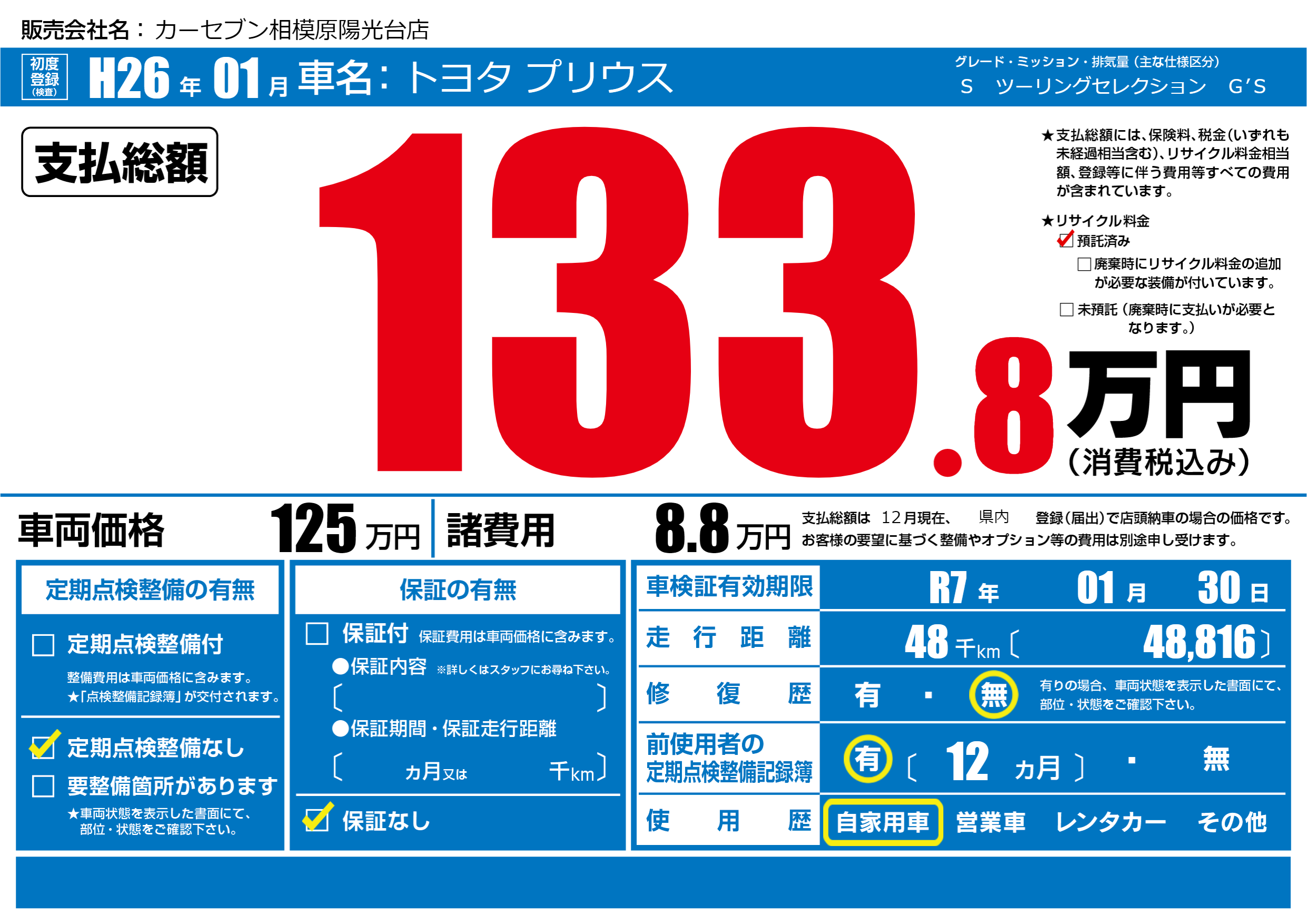 なし | 車検制限 | R7年01月30月 |