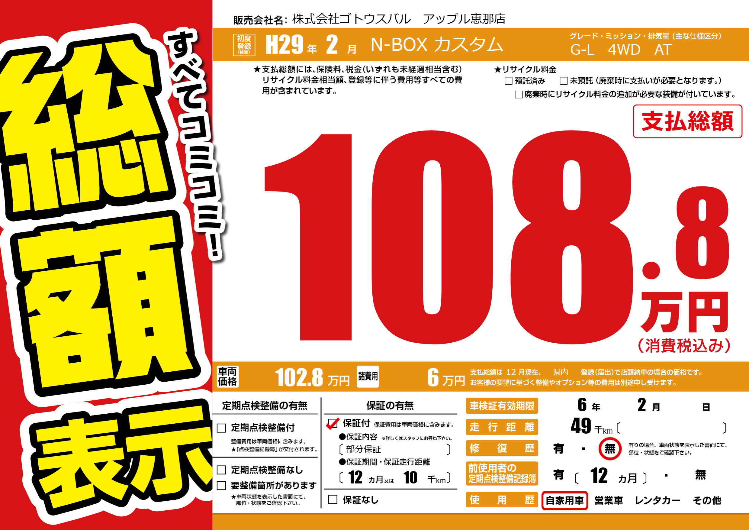 | 走行キロ | 4.9万km | ||