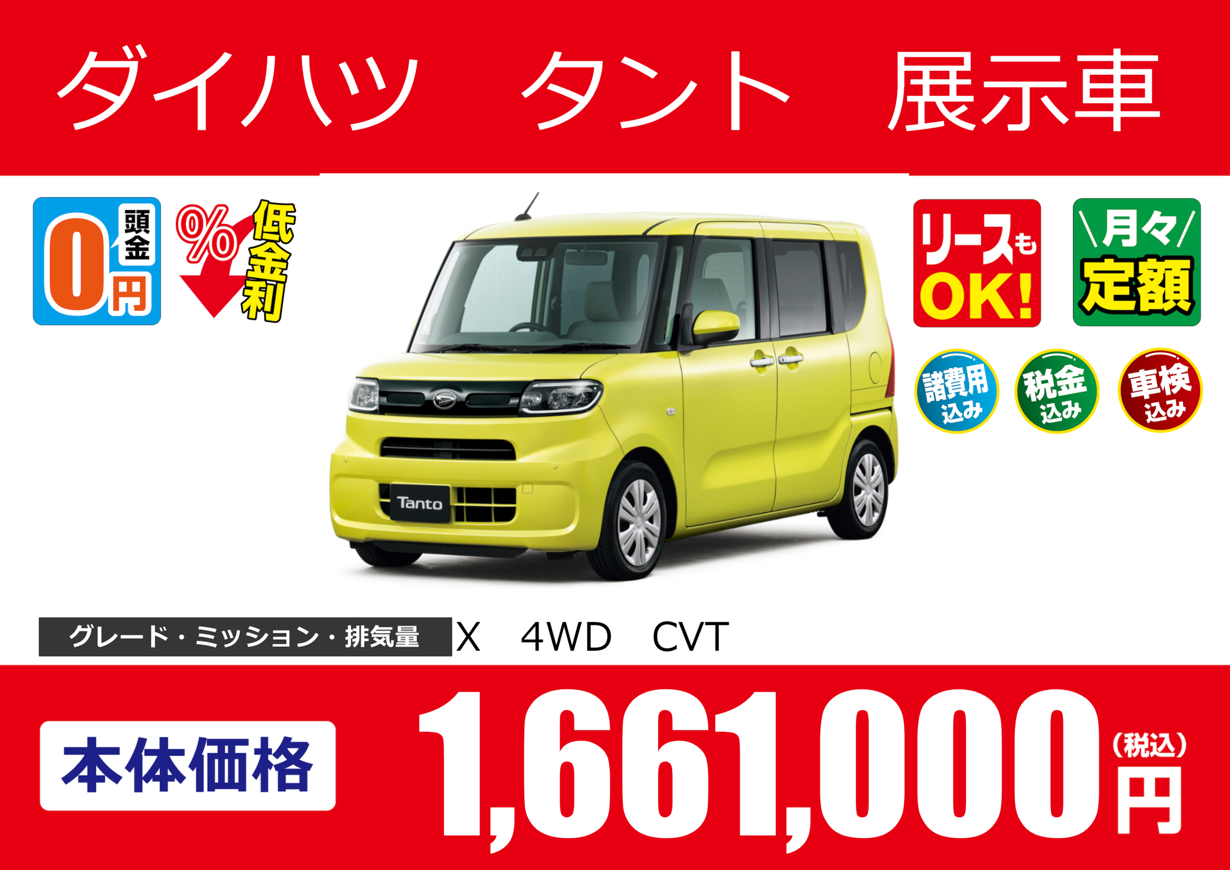 | 車名 | ダイハツ タント 展示車 | グレード ミッション 排気量 |