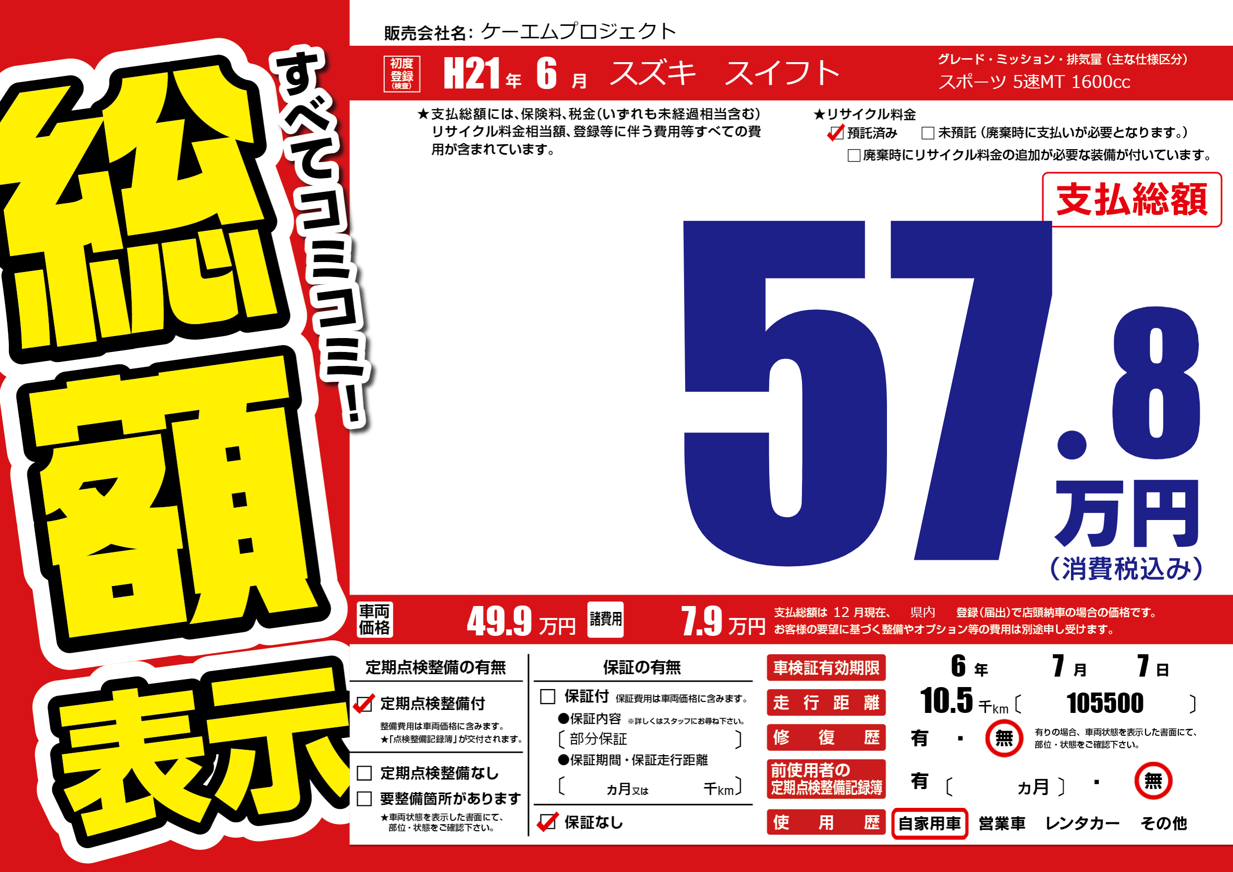 なし | 車検制限 | 6年7月7月 |