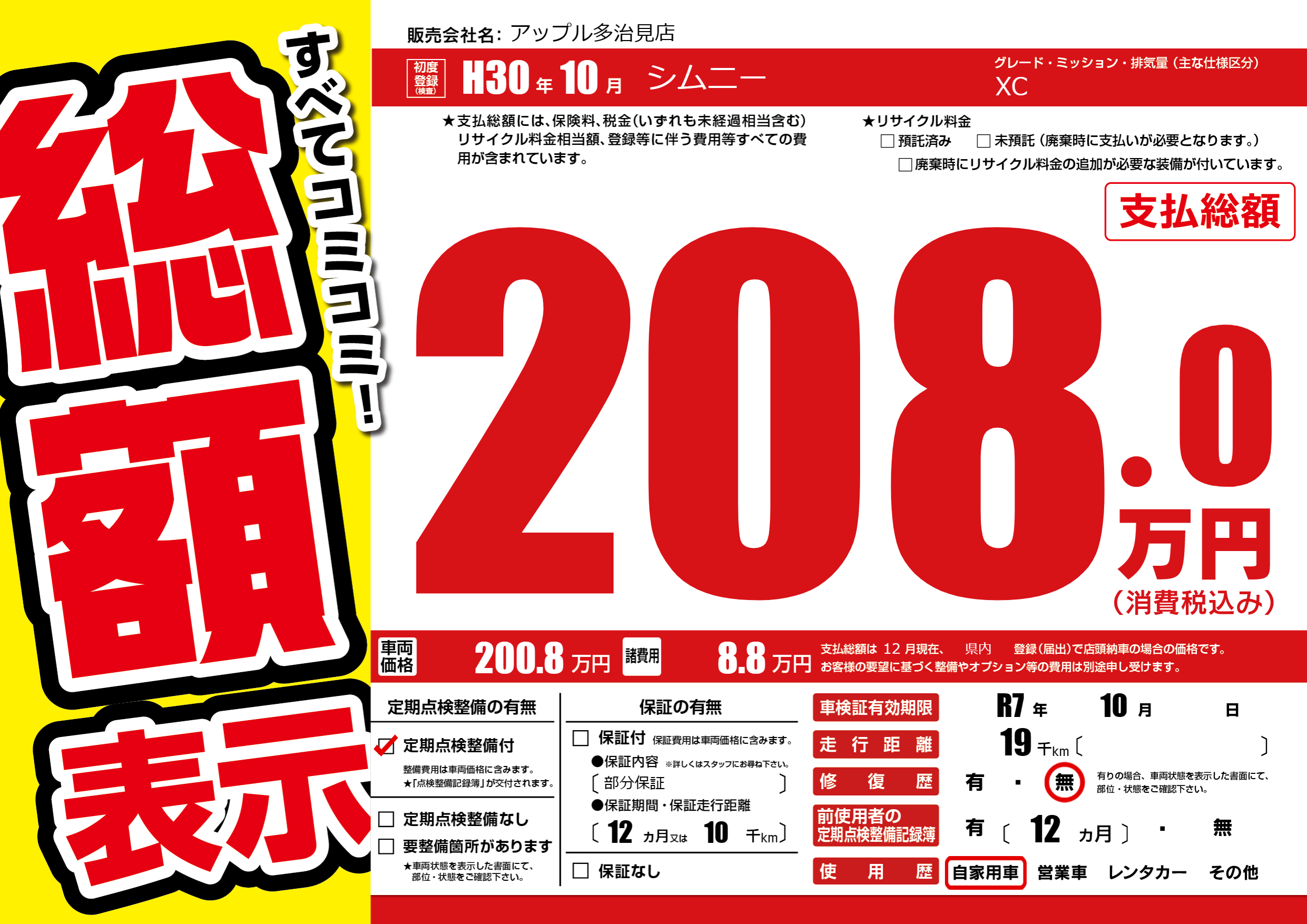| 車検制限 | R7年 10月 - 日 | ||