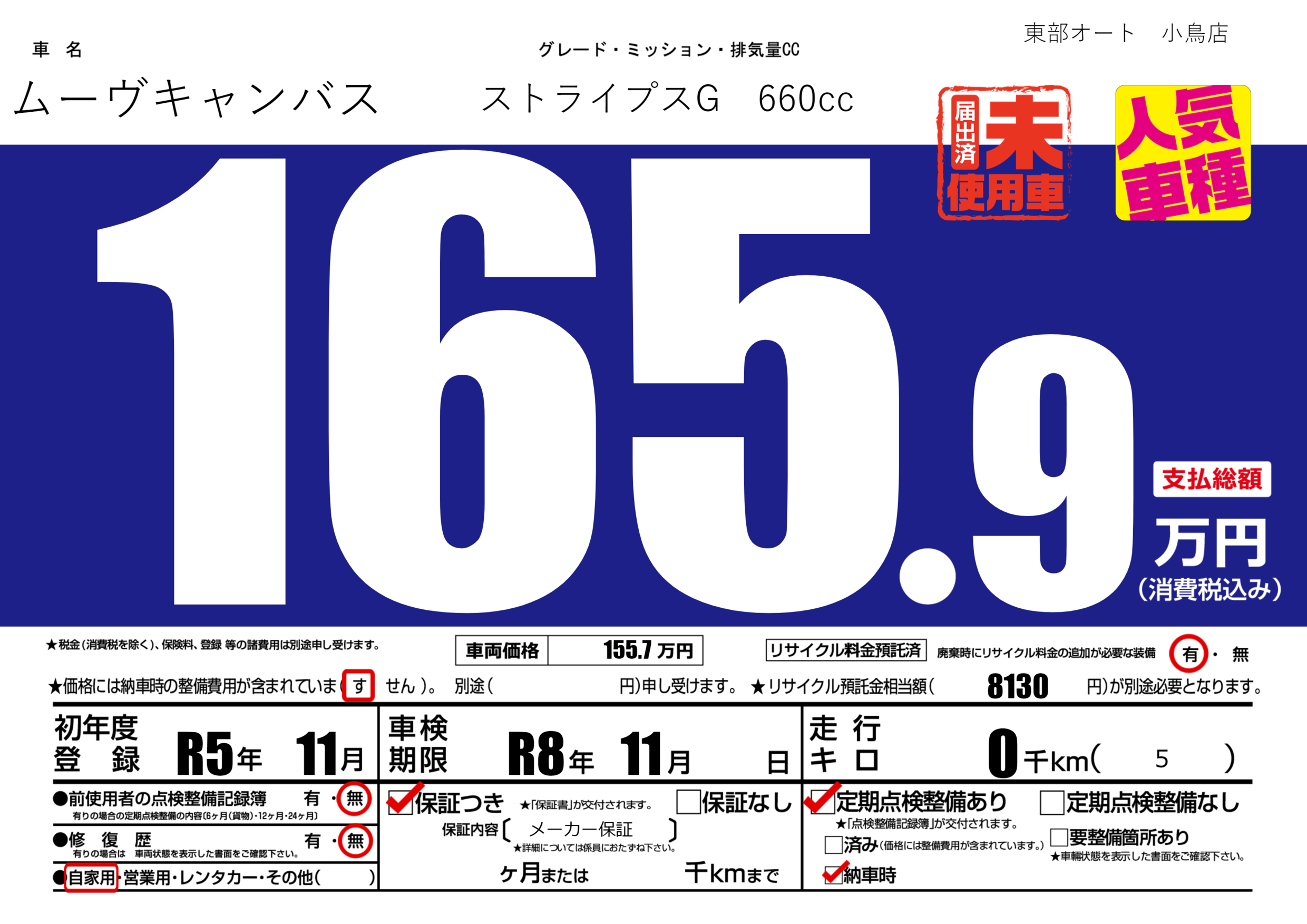 | 車検制限 | R8年 11月 - 日 | ||