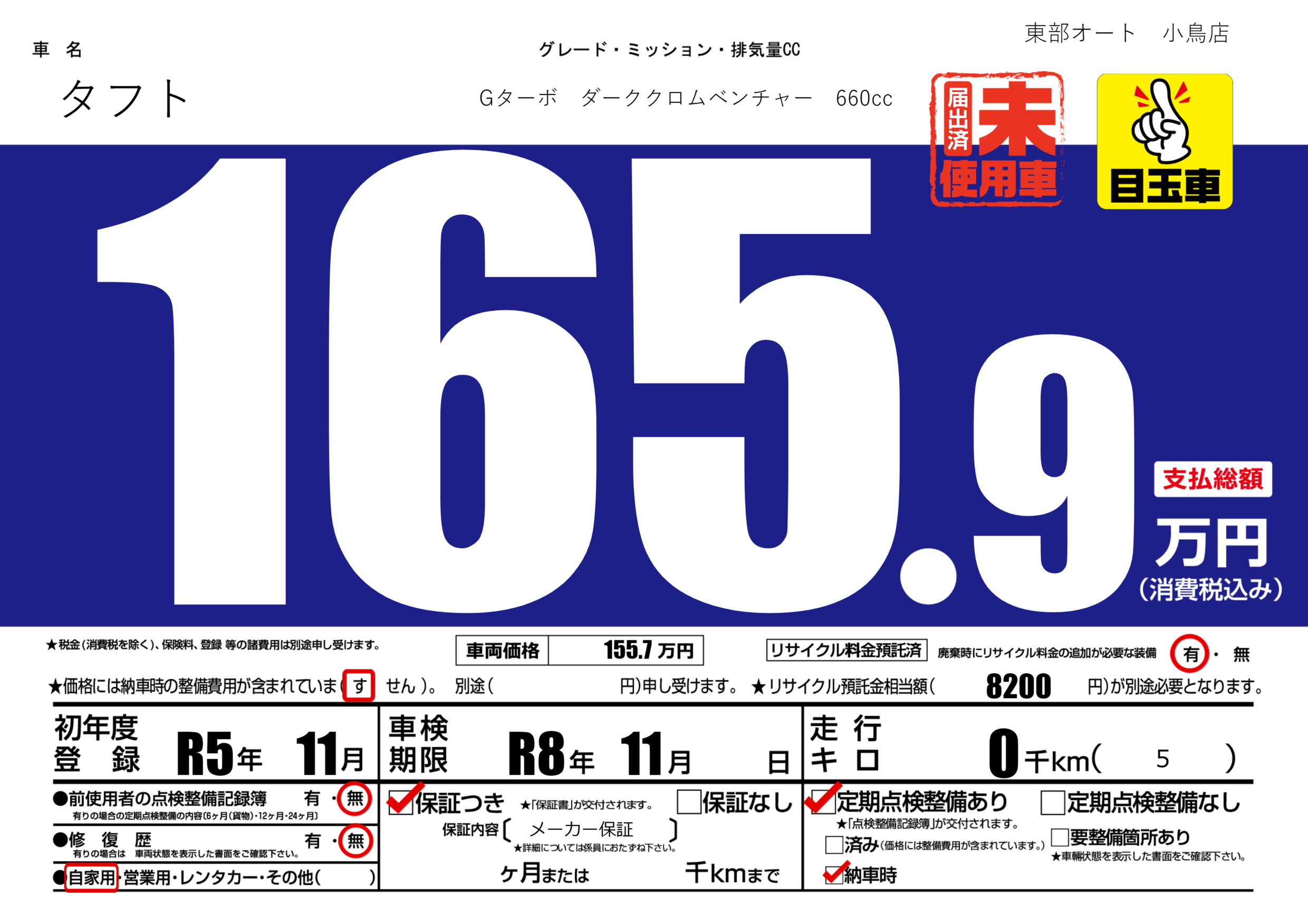 | 走行キロ | - | 初年度登録 | R5年11月 |