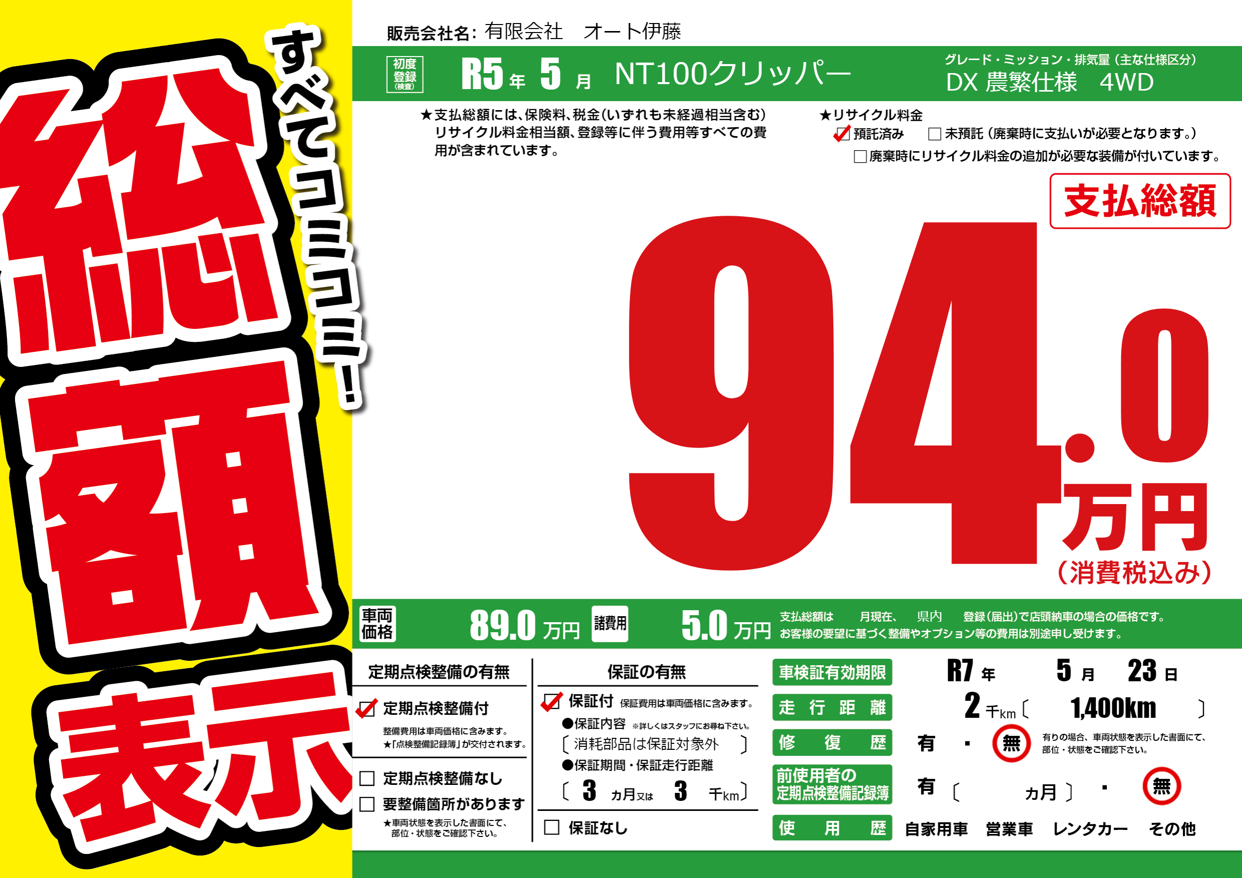 | 車名 | NT100クリッパー | グレード ミッション 排気量 |