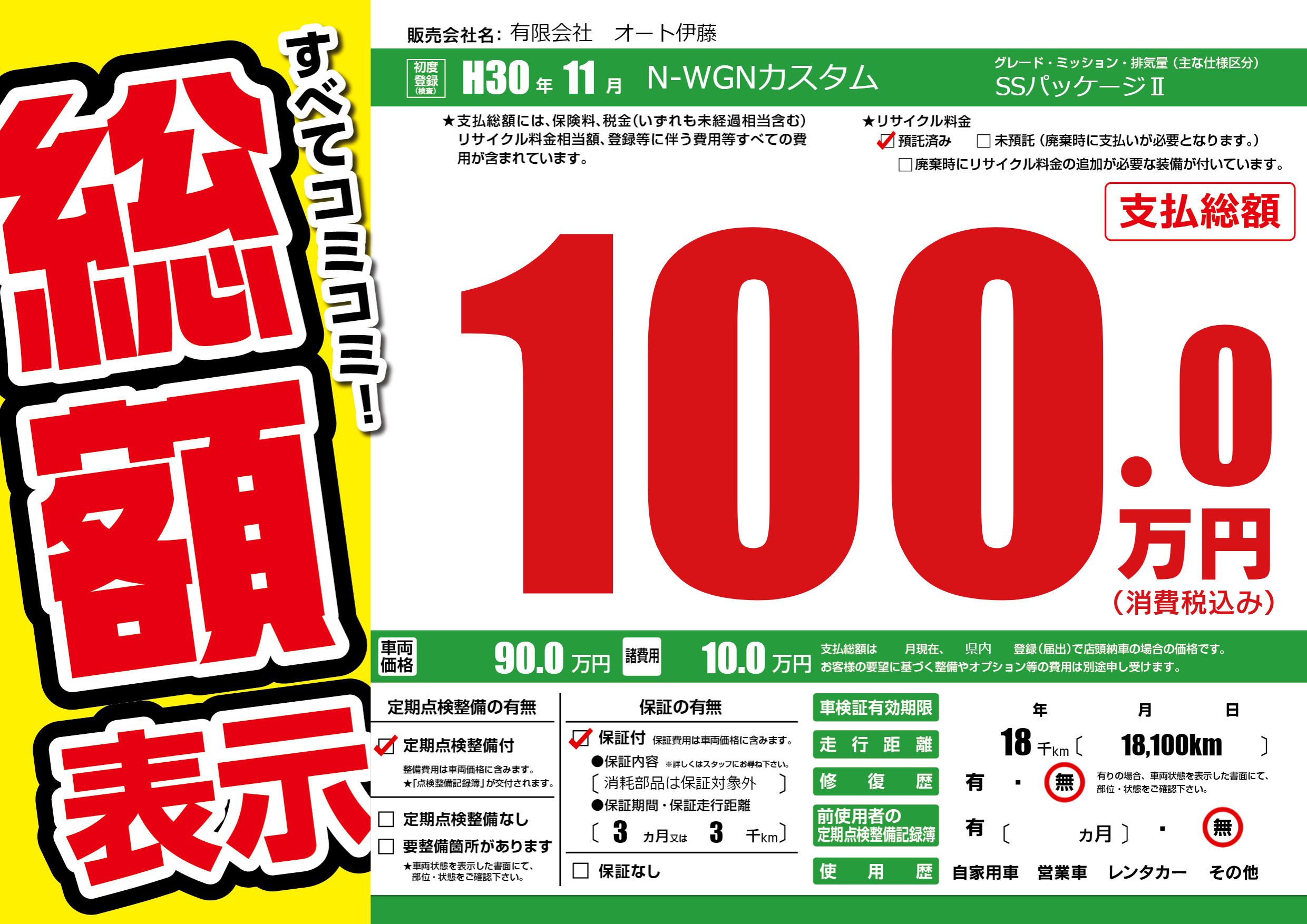 保証付き 保証内容(消耗部品は保証対象外) 3ヶ月または(3)千kmまで |