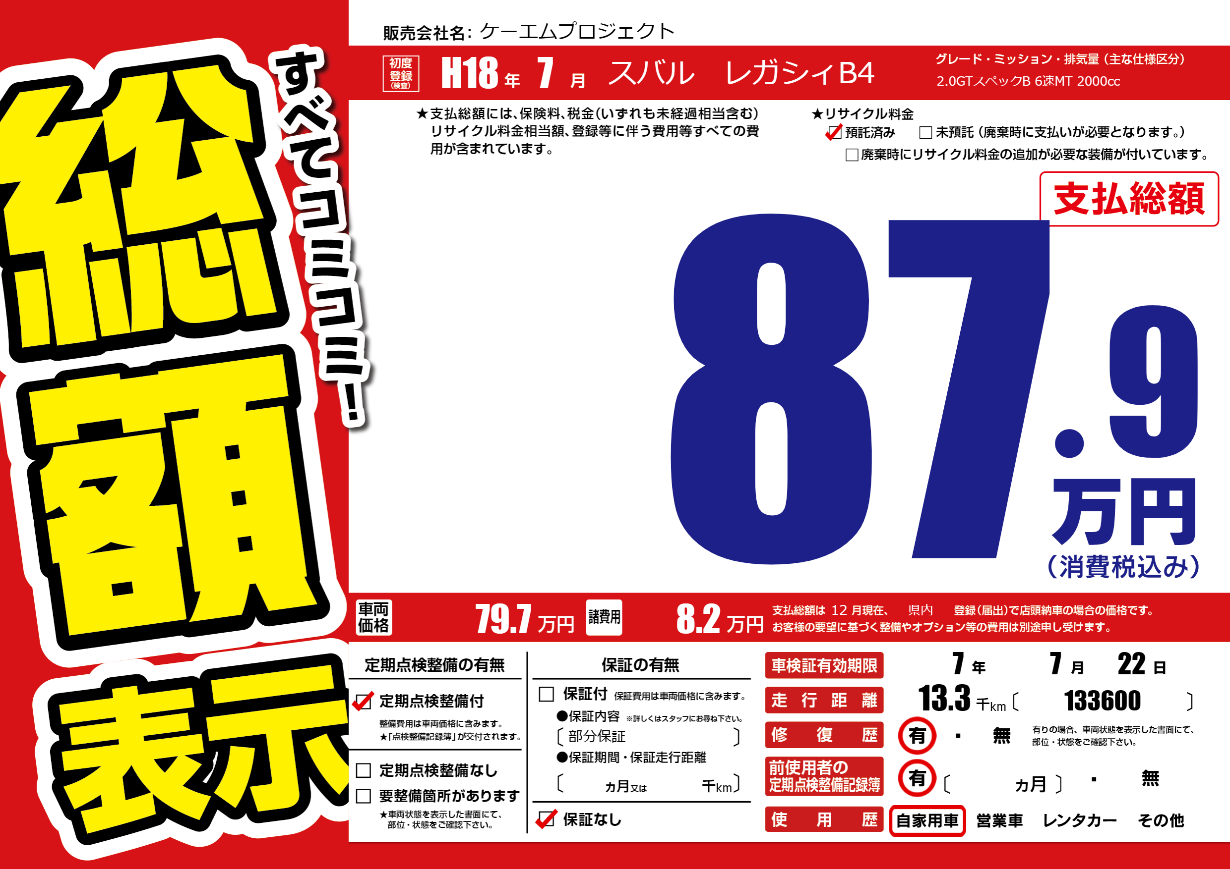 | 車検制限 | 7年 7月 22日 | ||