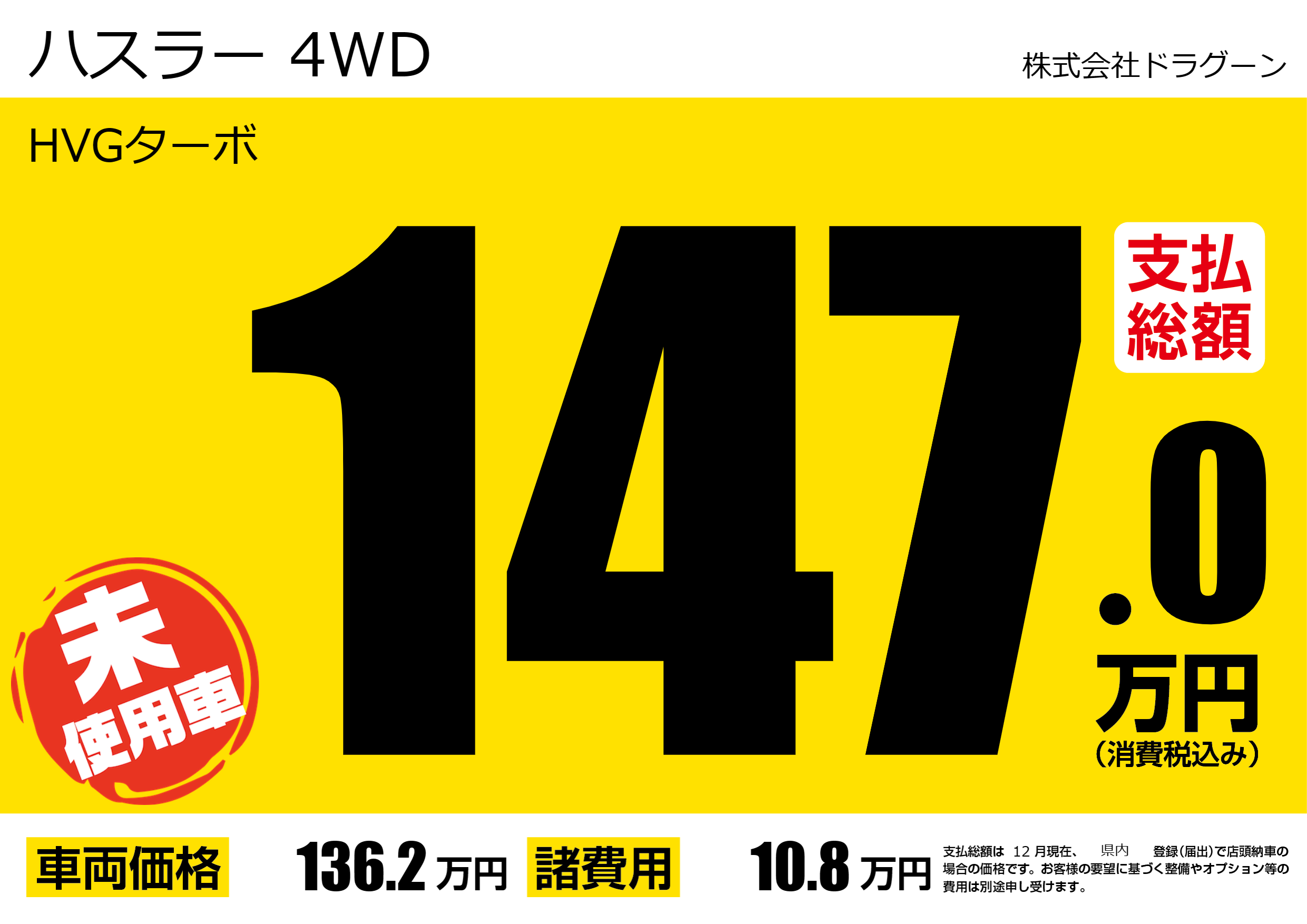 | 車名 | ハスラー 4WD | グレード ミッション 排気量 |