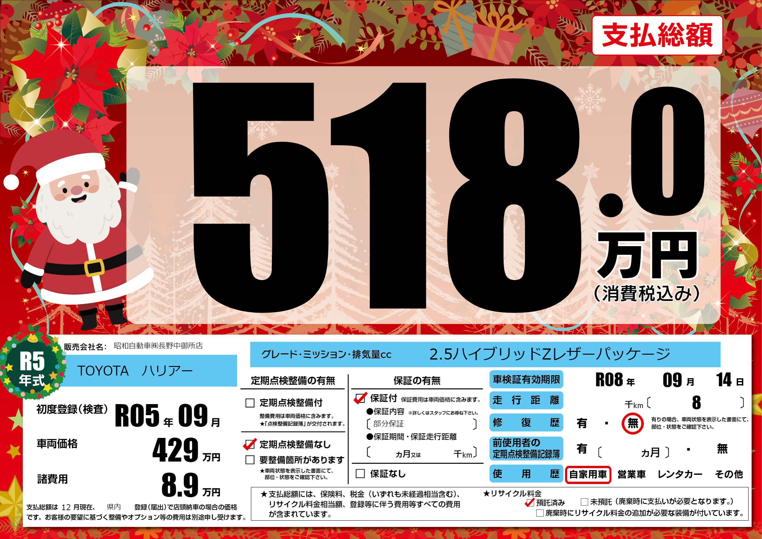 | 走行キロ | - | 初年度登録 | R05年09月 |