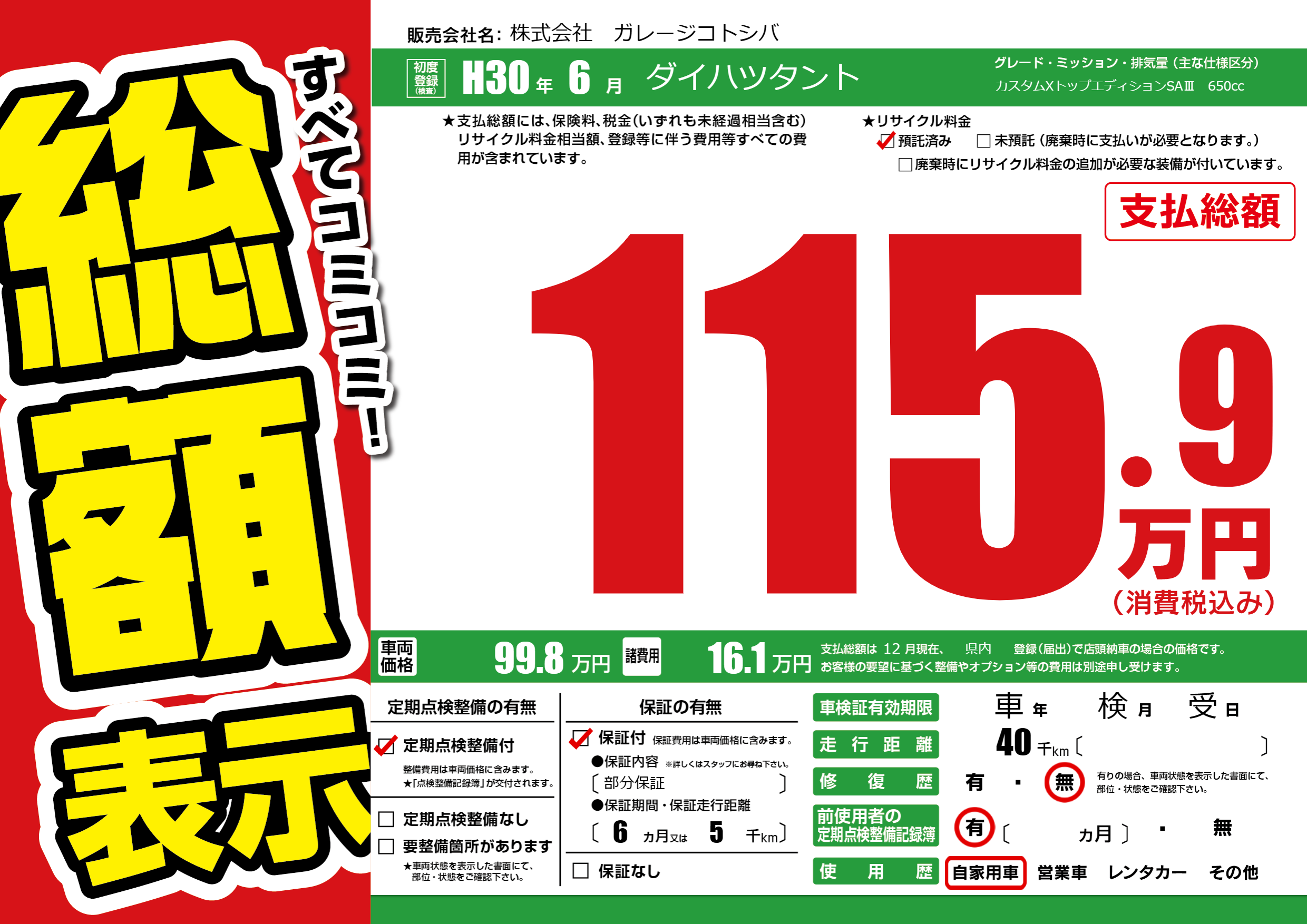 保証付き 保証内容(部分保証) 6ヶ月または(5)千kmまで |