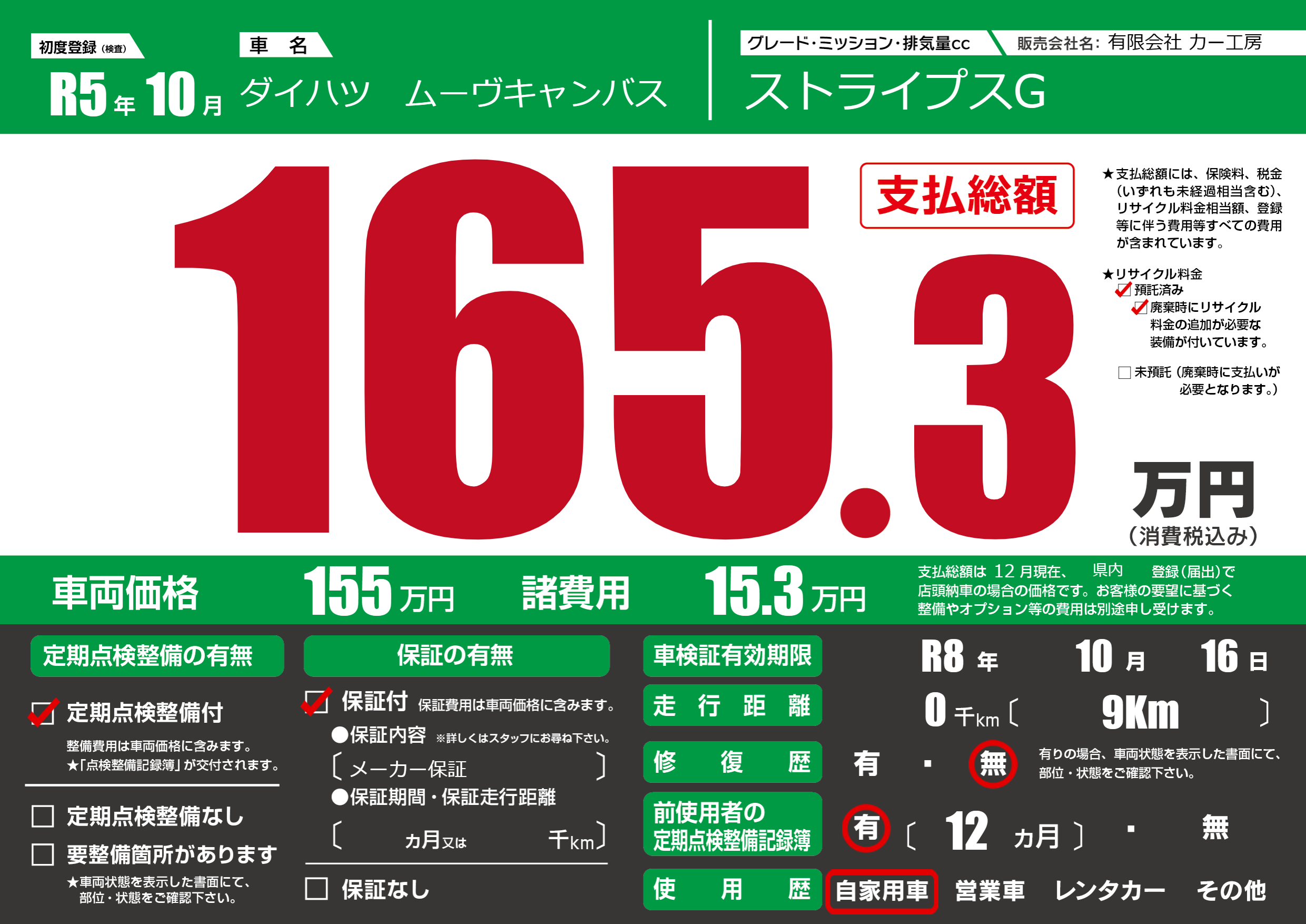 | 走行キロ | - | 初年度登録 | R5年10月 |