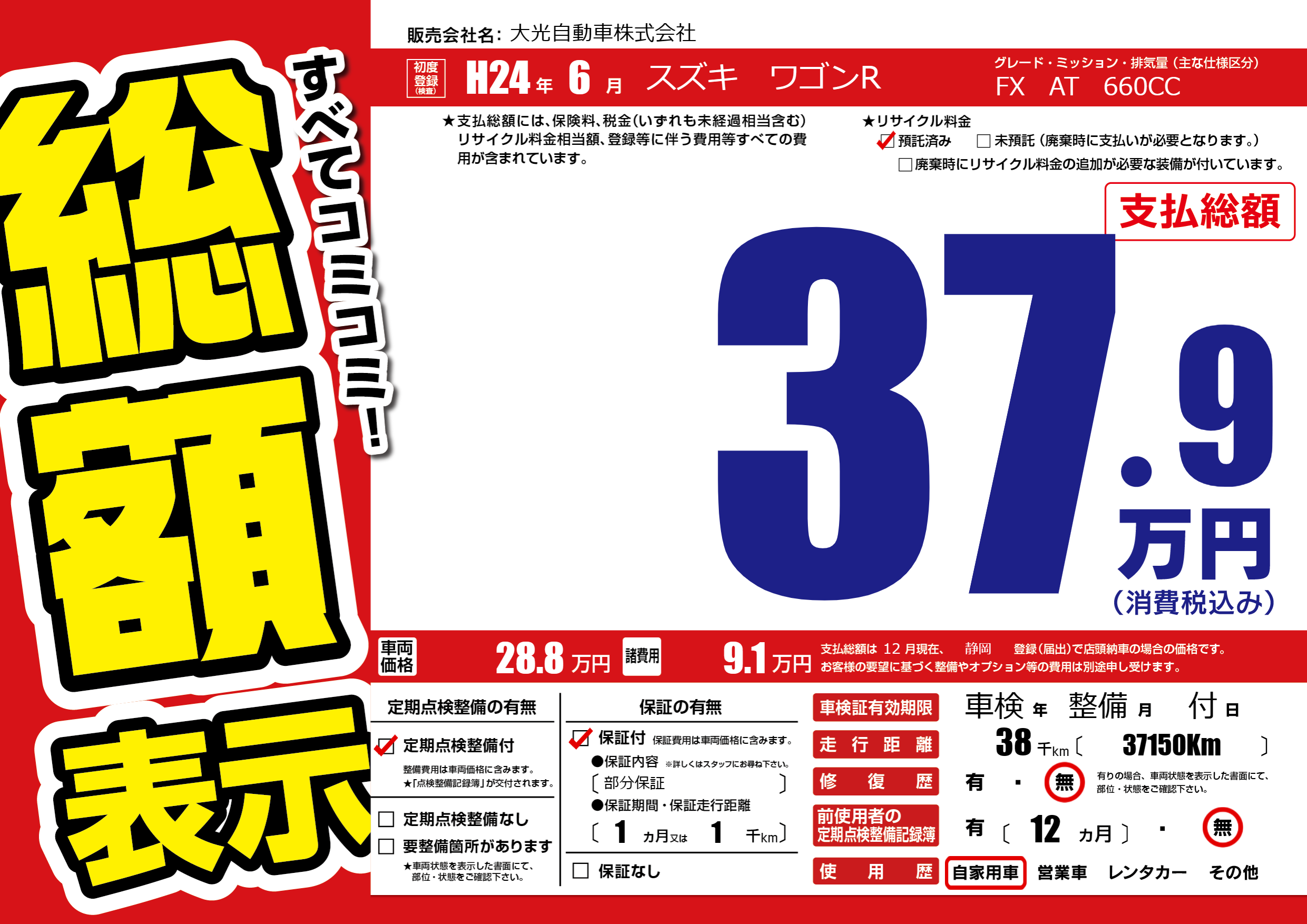 | 車名 | スズキ ワゴンR | グレード ミッション 排気量 |