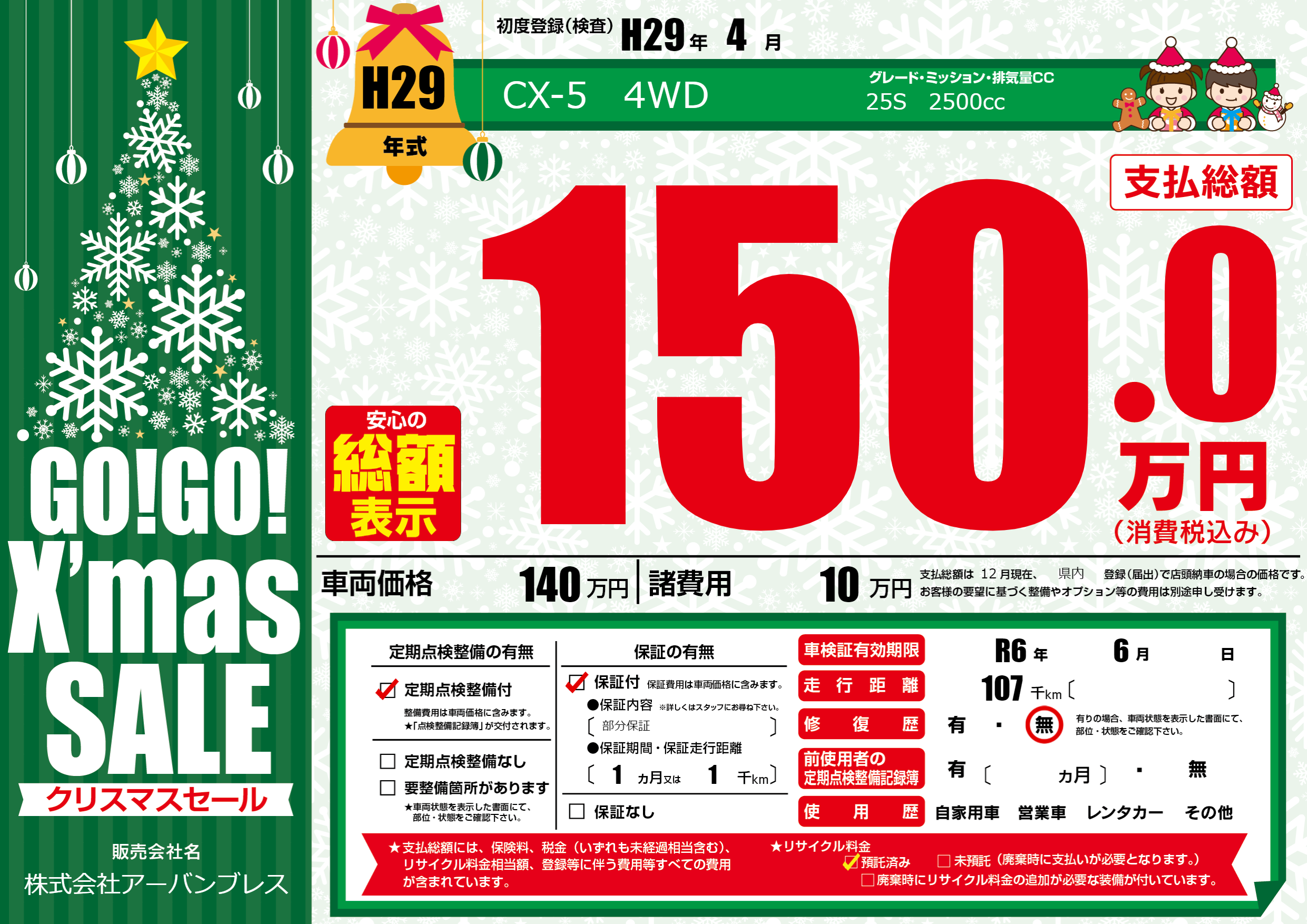 | 車検制限 | R6年 6月 - 日 | ||