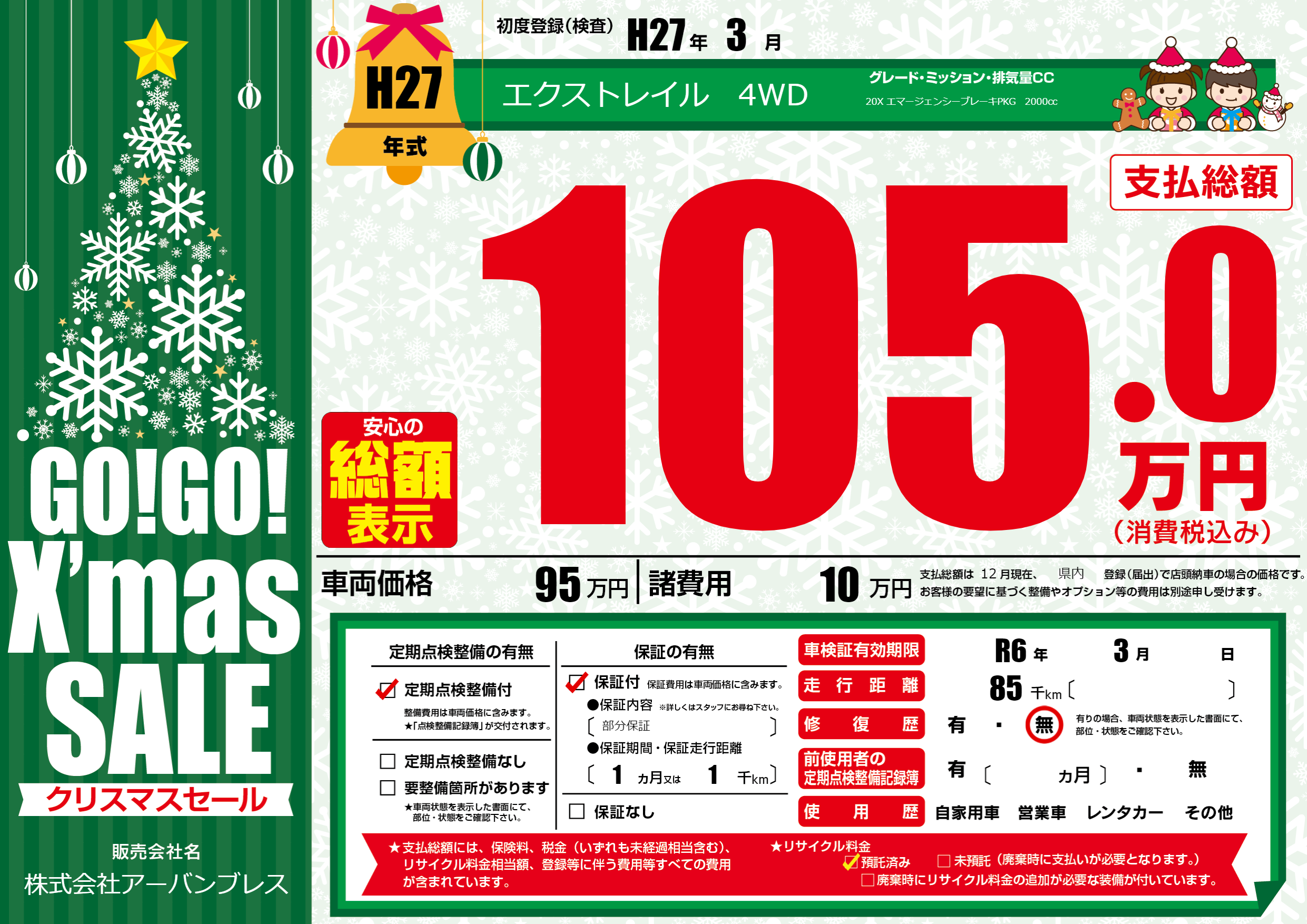 | 車名 | エクストレイル 4WD | グレード ミッション 排気量 |