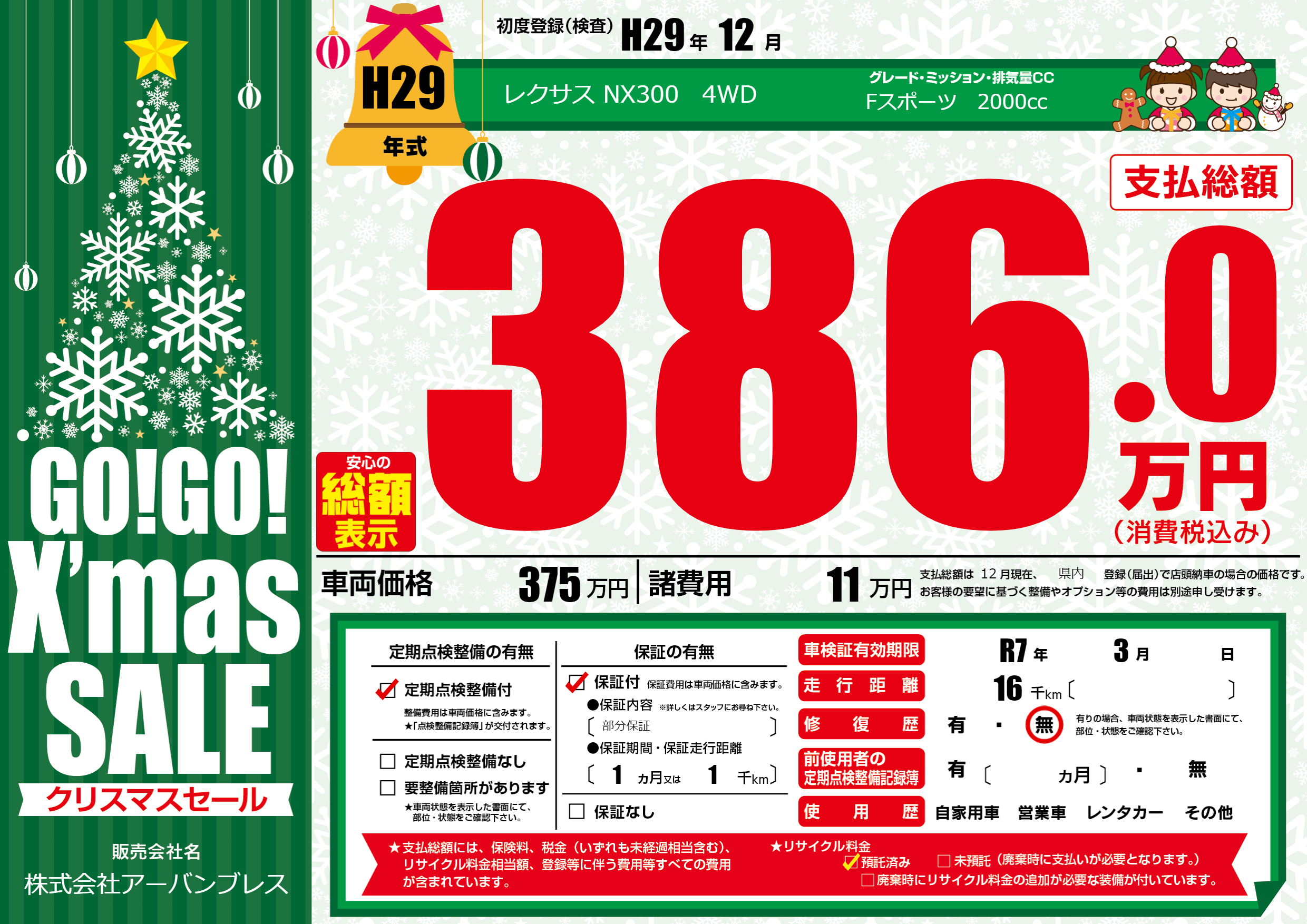 | 車名 | レクサス NX300 4WD | グレード ミッション 排気量 |