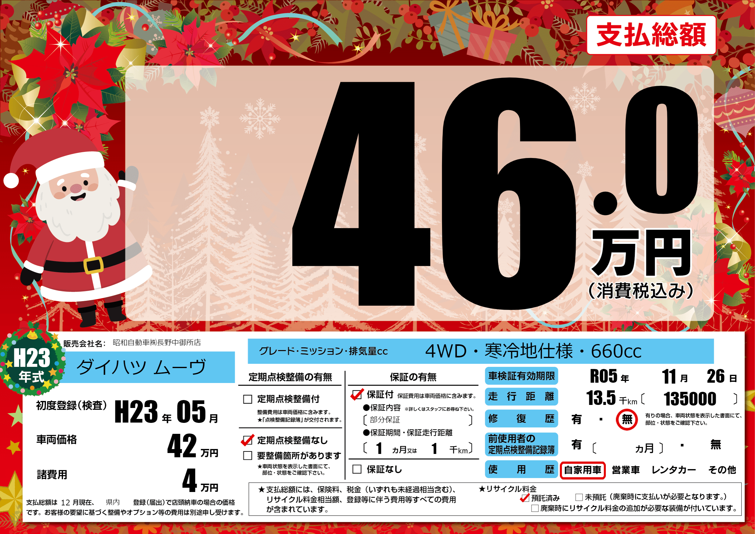 | 車名 | ダイハツ ムーヴ | グレード ミッション 排気量 |